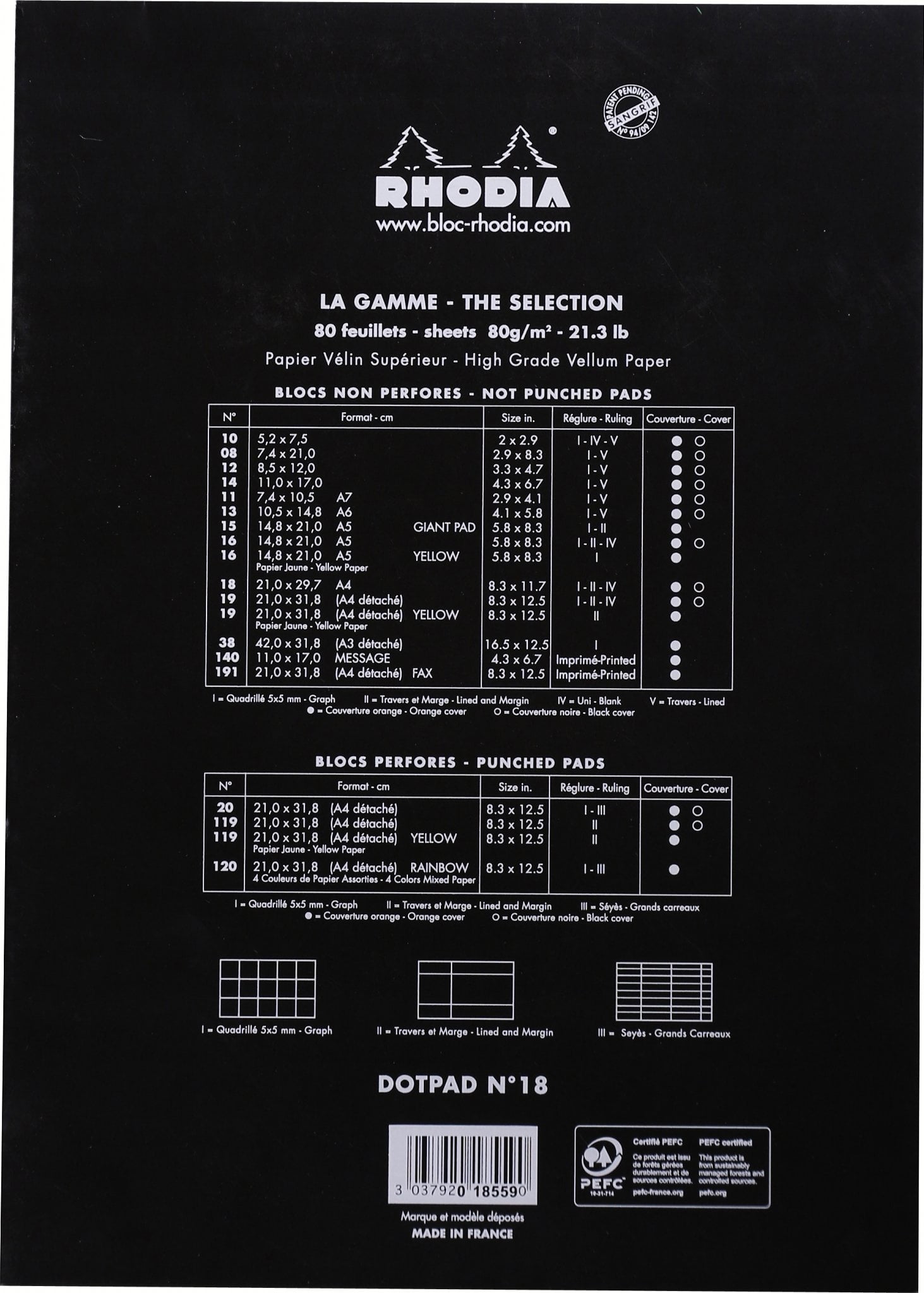 Rhodia – Black Notepads Dot Grid – 8 ¼ x 11 ¾