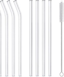 Invoibler 8 Pack Reusable Glass Straws, Transparent Straws,Portable Drinking Straws – Smoothie Straws for Smoothies Tea Juice Wine