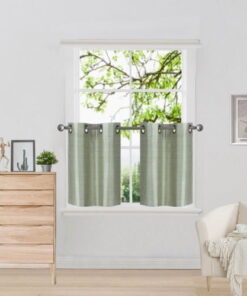 D2 Sage 1-Pair of Solid Insulated Grommet Treatment Curtains for Short Windows, Livingroom, Bathroom or Kitchen, Two (2) Piece Faux Silk Blackout Tier Panels 30′ Wide x 24′ Length Each