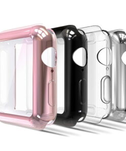 Apple Watch Case 45mm Series 7 ,4 Pack Soft TPU Ultra-Slim Lightweight Bumper Scratch Resistant Protective Case Cover for Apple Watch Series 7 – Black, Clear, Rose Gold, Silver (4Pack)