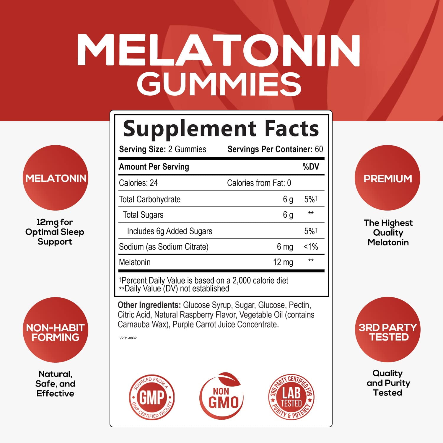 Nature’s Nutrition Melatonin Gummies Non Habit Forming Restful Sleep, 12 mg, 120 Gummies