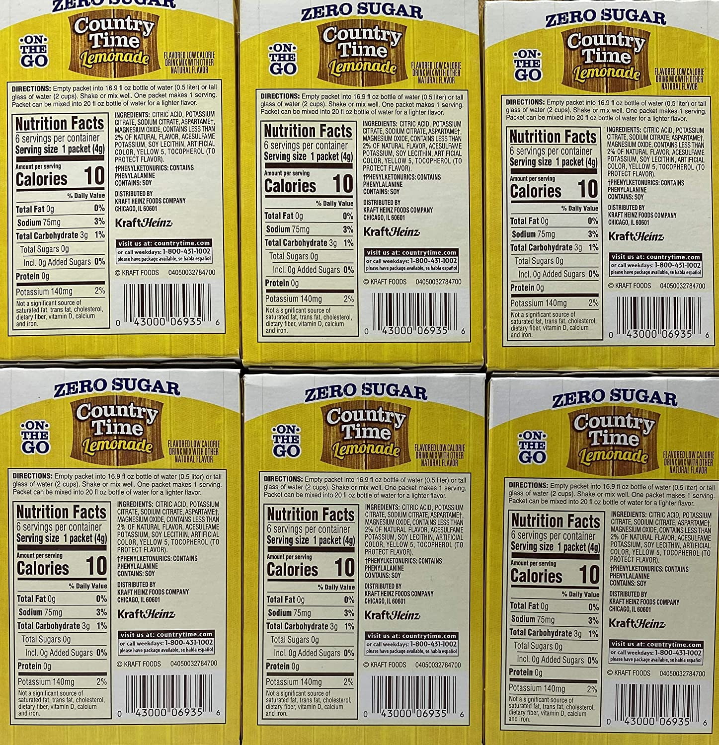 Country Time Lemonade Sugar Free On the Go! 6 Packets Powder (Pack of 6) Gluten Free