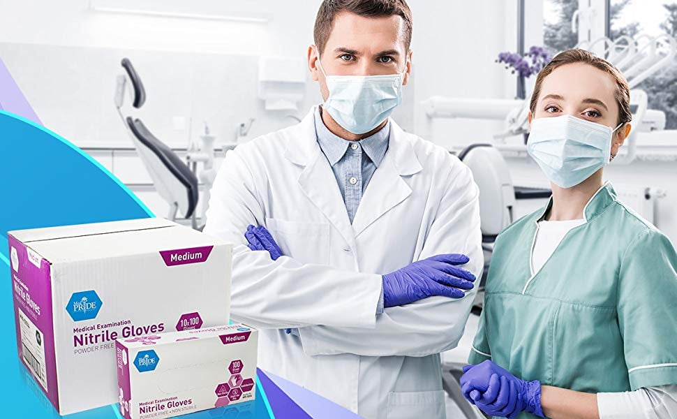 Fifth Pulse Vinyl Exam Latex Free Gloves – Blue – 2 Boxes of 100 Gloves – 200 Total (Large)