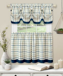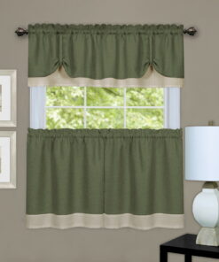 Shabby Farmhouse Flax Linen Kitchen Curtain Tier & Valance Set – Sage Green, 24 in. Long