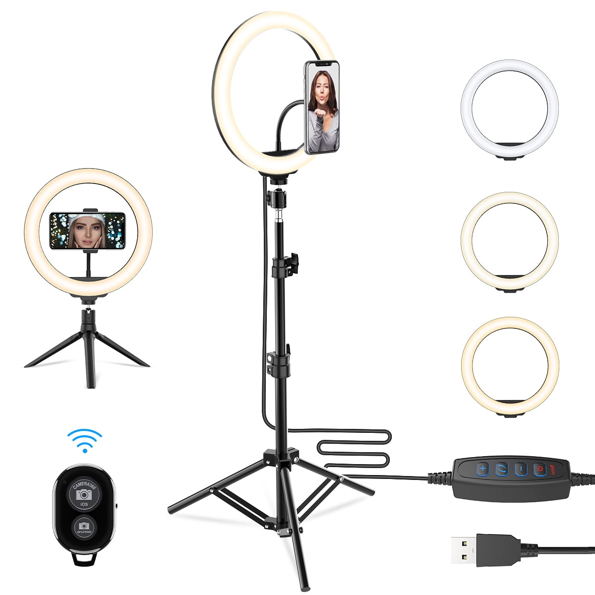 10.2′ LED Selfie Ring Light with Extendable Tripod Stand & Cell Phone Holder, 10 Brightness Level, 3 Light Modes for Live Streaming & YouTube Video, Photography, Shooting, Dimmable Makeup Ringlight