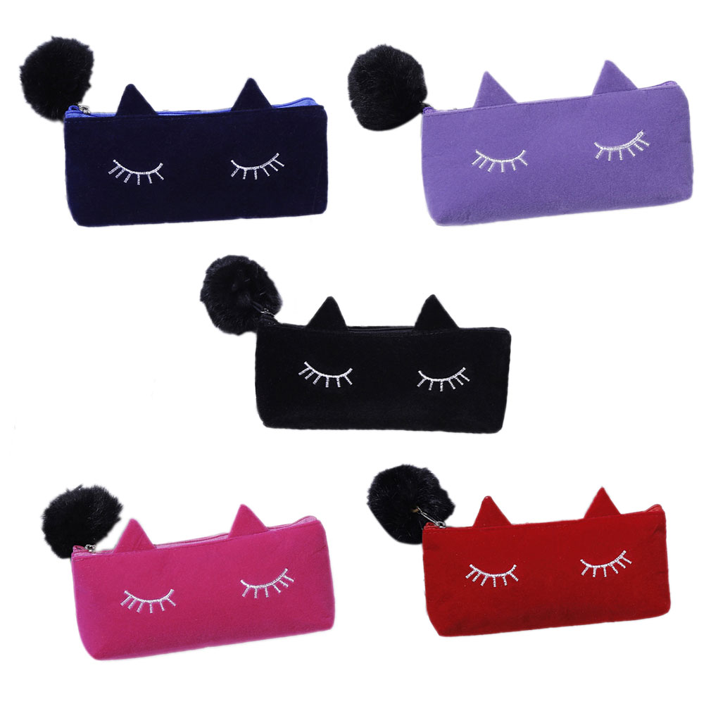 Students Pencil Bag Pen Case Stationery Pouch Flocking Cloth Cartoon Zipper Bag School Supplies