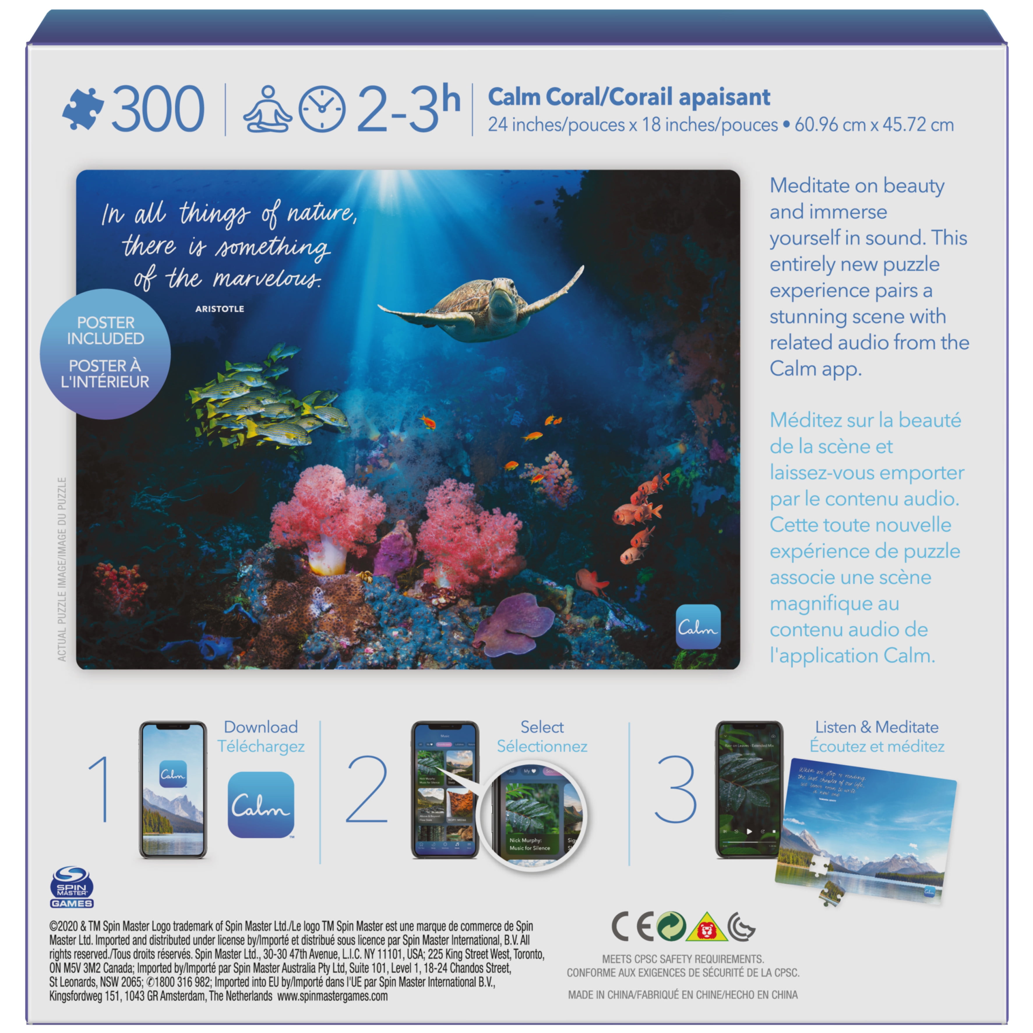 Spin Master has partnered with the #1 sleep and meditation app, Calm, to bring you Calm Puzzles. Enjoy assembling these mindful puzzles while listening to peaceful audio content, allowing you to lower stress and improve your mood. Each jigsaw puzzle features a zen landscape with vibrant colors and are crafted from high-quality grayboard with a matte finish that cuts down on glare to provide a picture-perfect finish. Our specially designed puzzles ensure every piece is different and fit tightly with a satisfying snap. These puzzles are designed to be completed in about 2-3 hours, but you can go at whatever pace and take as many sessions as you like. That’s the beauty of puzzles; they are always there for you whenever the mood strikes. Along with the purchase of a Calm Puzzle, you will receive an offer for a free 30-day subscription to the Calm app, perfect for those who enjoy sensory toys for a soothing experience.