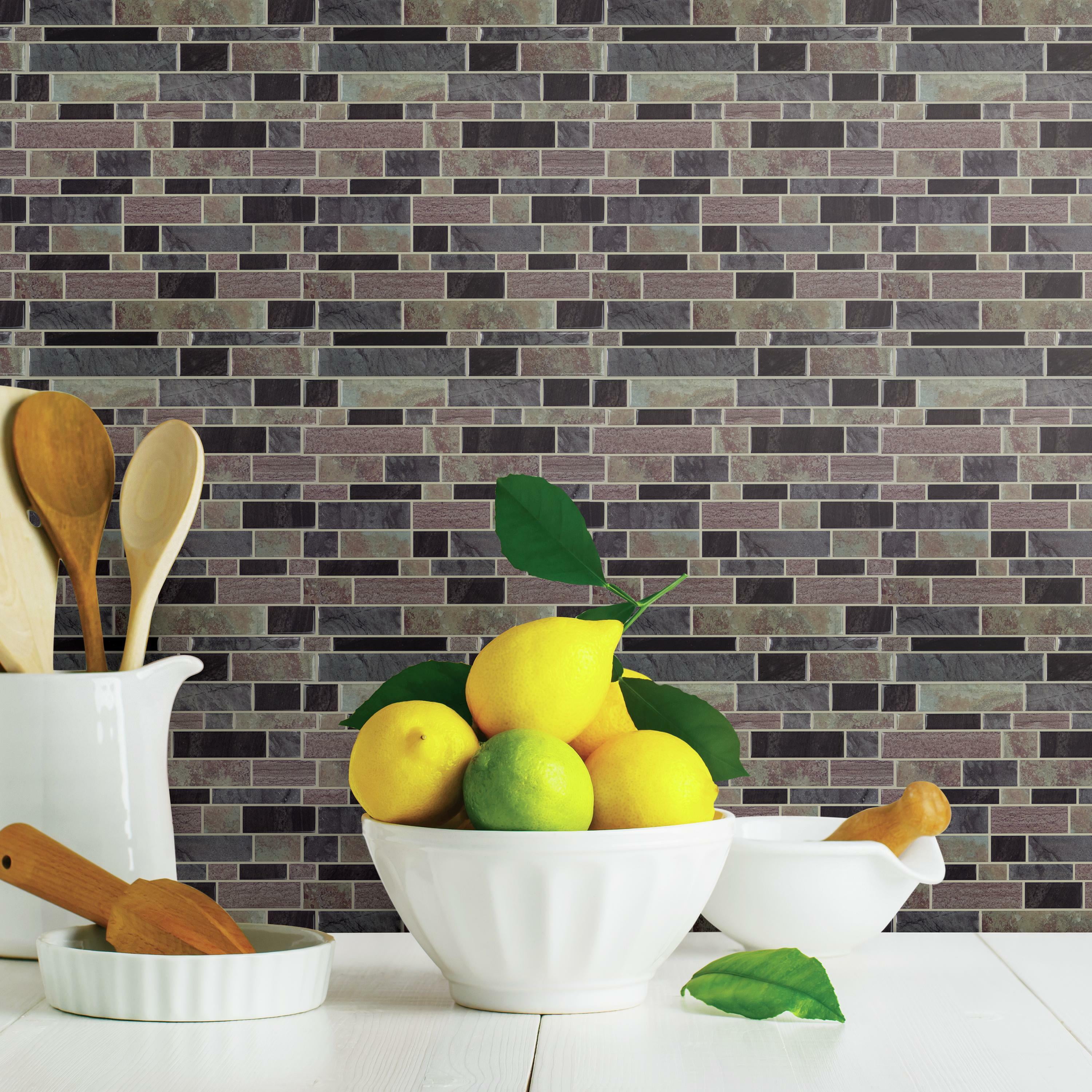 RoomMates Modern Long Stone Tile Peel and Stick Backsplash, Brown, 10.5′ x 10.5′