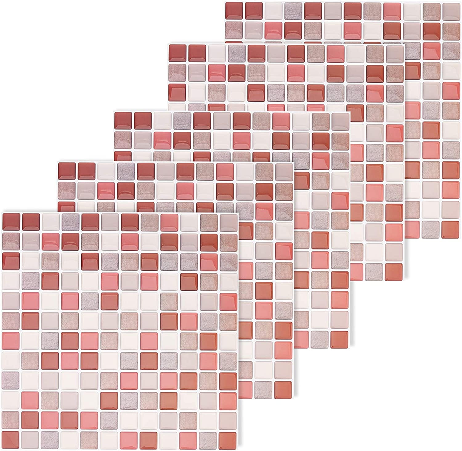 5 Sheet 3D Mosaic Tile Sticker Peel and Stick Backsplash Tile Kitchen Mosaic Wall Tiles Self-Adhesive DIY Backsplash for Kitchen Bathroom 9.3′ X 9.3′ Covering 3 Square Feet