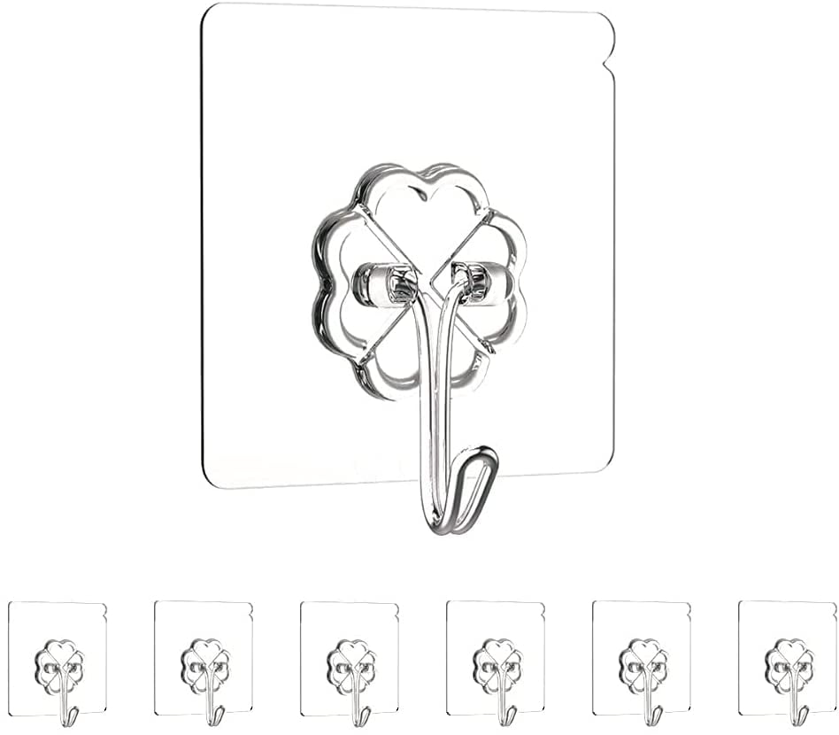 6 Pack Wall Hooks 10lb(Max) Heavy Duty Adhesive Hooks Water Proof Command Hooks Transparent Reusable Seamless Hooks for Bathroom Kitchen Office