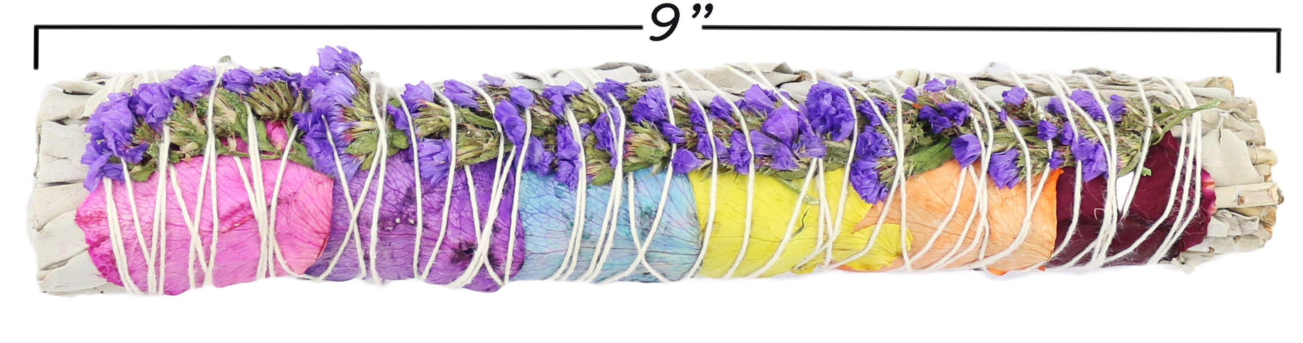 SOUL STICKS 9 inch floral white sage smudge stick for energy cleansing your home or workspace. FREE US SHIPPING! Made from USDA organic white sage grown in California, without the use of pesticides or synthetic fertilizers. This colorful white sage smudge stick can be used to begin a spiritual spring cleaning for your soul or your house. Burning sage in your home allows you to remove all the negative energies and experiences that have accumulated over time. Our floral white sage is aromatic white sage with wildflowers and multi-colored rose petals to bless and protect your sacred space or those around you with the virtues of love, strength and power. The combined effects of smudging with dried flowers and white sage is known to stimulate love, attraction, romance, sexual arousal, passion, peace, and harmony. Order includes: One 9 inch Floral White Sage smudge stick carefully packaged alongside our printed smudge guide. THE ESSENTIAL SMUDGE GUIDE: Become a Shaman-level smudging expert with our Soul Sticks Smudge Guide. The thorough instructions, written in layman’s terms, will help you understand the significance, health and spiritual benefits, as well as the proper technique of the ancient practice that has helped healed so many lives. FAMILY OWNED AND OPERATED: Purchase with confidence from a supplier you can trust! Our family has been in business since 1993, and nearly 30 years later we continue to proudly offer only the best in sage and incense products.SOUL STICKS 9 inch floral white sage smudge stick for energy cleansing your home or workspace. FREE US SHIPPING! Made from USDA organic white sage grown in California, without the use of pesticides or synthetic fertilizers. This colorful white sage smudge stick can be used to begin a spiritual spri