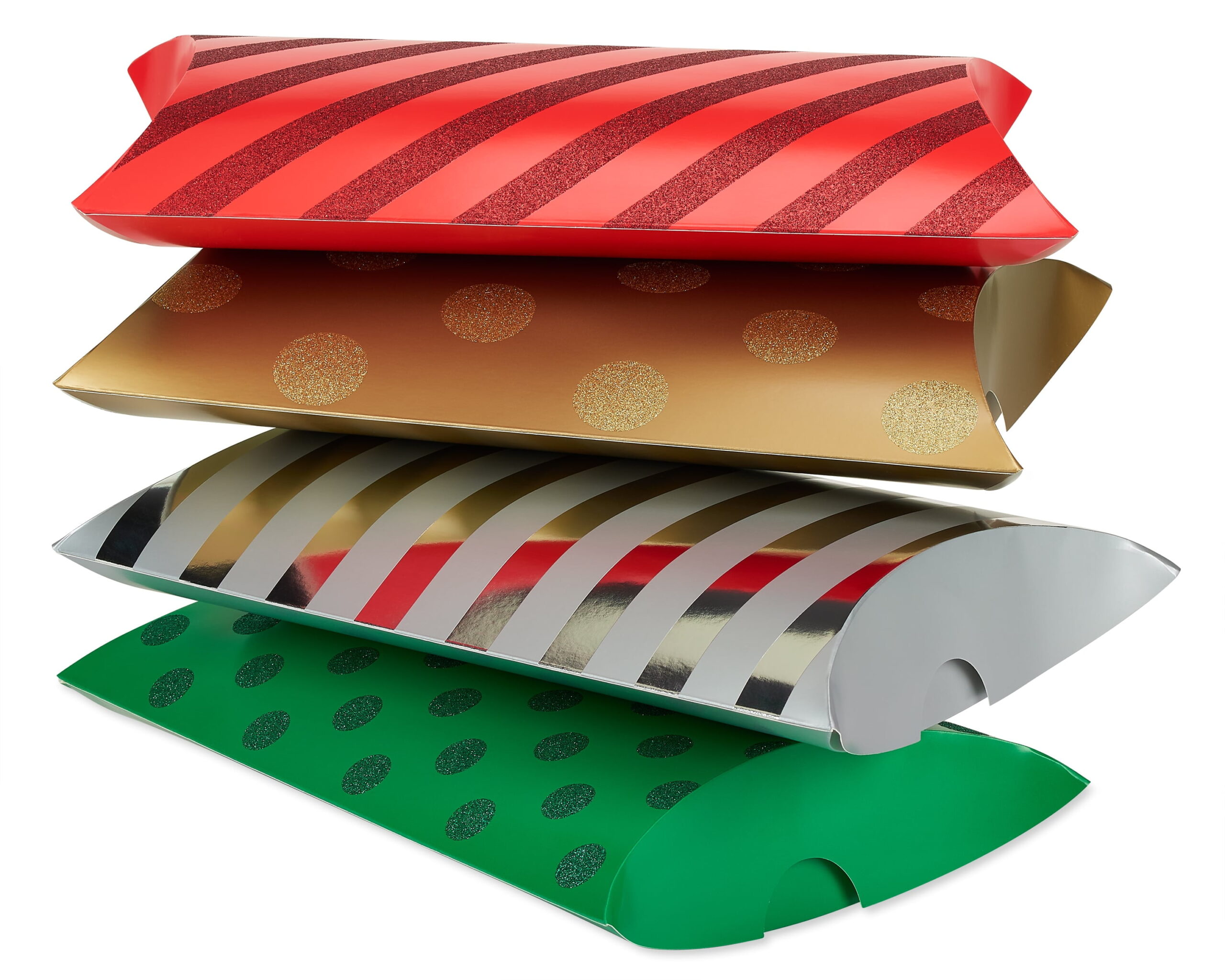 American Greetings Pillow Gift Boxes, Multicolored Polka Dots and Stripes (4 Boxes)