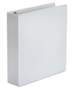 Heavy-duty view binder with One-Touch Slant Ring not only securely hos all your important documents, but also makes it easy to access them. Single-touch booster opens and closes slant rings with the touch of one finger. Design also features a nonstick material that won’t lift ink or toner off printed pages. Wider front and back binder panels fully cover standard dividers and sheet protectors so you can keep your paperwork and tabs protected. Organize and secure loose paper with four clear interior pockets. Each pocket hos up to 20 sheets. Gap Free ring design prevents gapping and misalignment of rings so pages stay put. These locking, metal slant rings have a higher page capacity compared to same-size round rings. 1-1/2 ring capacity hos approximately 375 sheets. Your letter-size pages lie flat with the back-mounted rings. Overlay material is made of crystal-clear poly. Binder is made of heavy-duty, PVC-free poly with exposed rivets on back and a sturdy, recycled chipboard core."