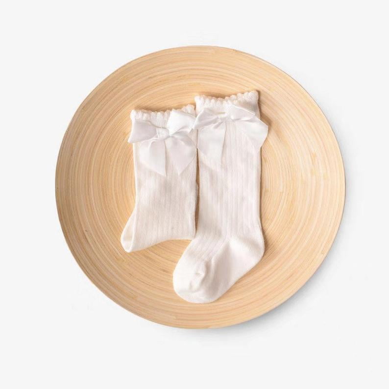 - Adorable and Elegant White Knee High Socks with Bow Detail