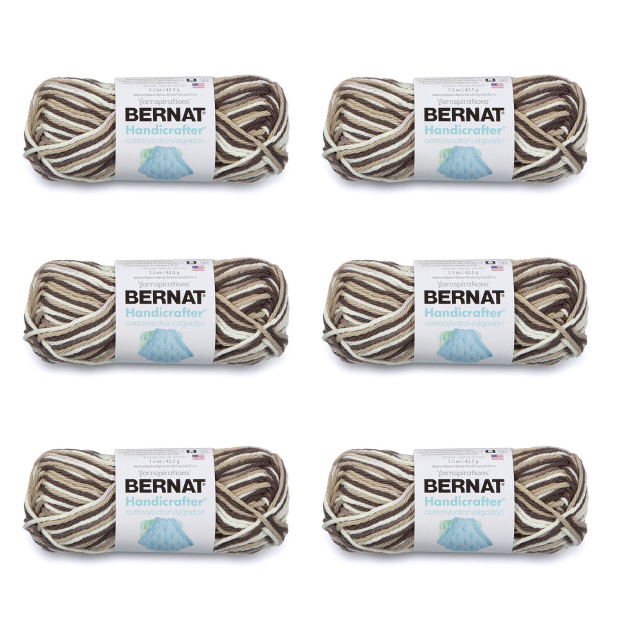 Bernat Handicrafter Cotton yarn is a natural, 100% USA grown cotton yarn. The perfect choice for your knit and crochet kitchen and home décor needs. Handicrafter is a versatile worsted weight yarn, that’s great for small projects like dishcloths and potholders, to home décor staples like afghans! Available in a wide variety of shades, including neutrals, brights, ombres, scents, twists and pastels. Conveniently machine washable and dryable for easy care.