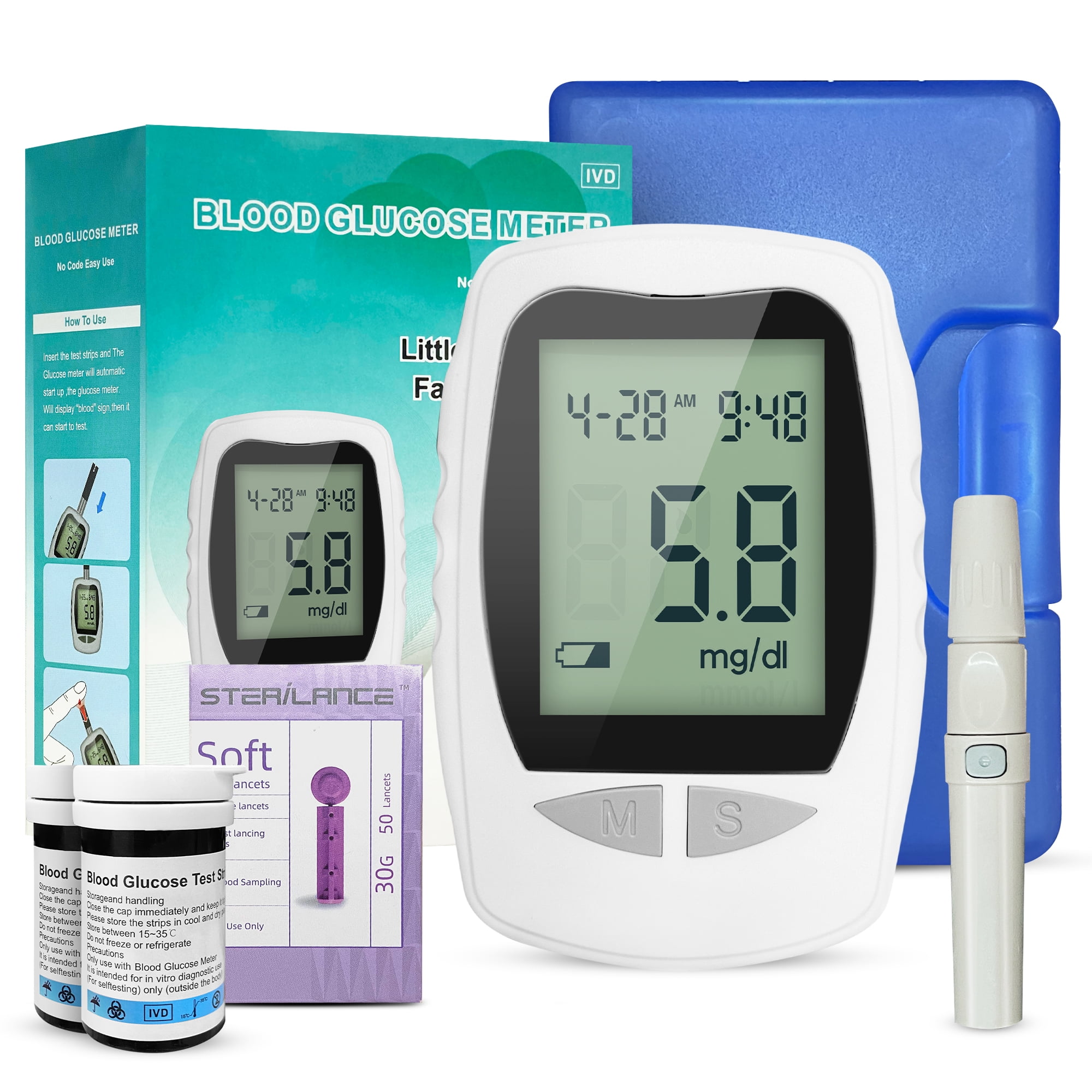 Blood Glucose Monitor Kit, Diabetes Testing Kit with 100 Test Strips and 100 Lancets Blood Sugar Test Kit with Lancing Device, Portable Blood Glucose Meter for Home Use