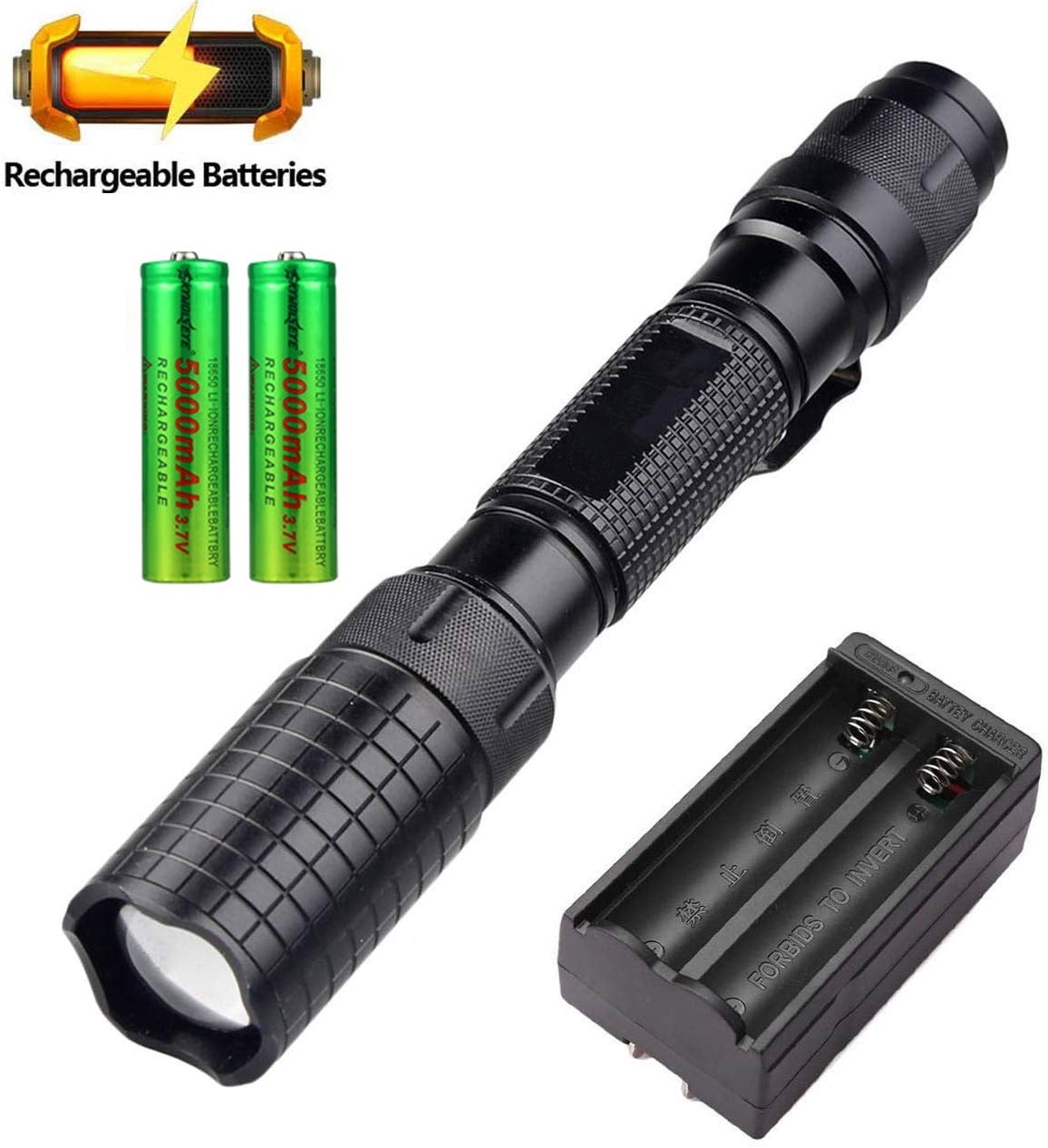 Brightest LED Tactical Flashlights , Ultra Bright Professional Military Torch Light 5 Mode Adjustable Brightness Waterproof LED Flashlight with Battery Charger