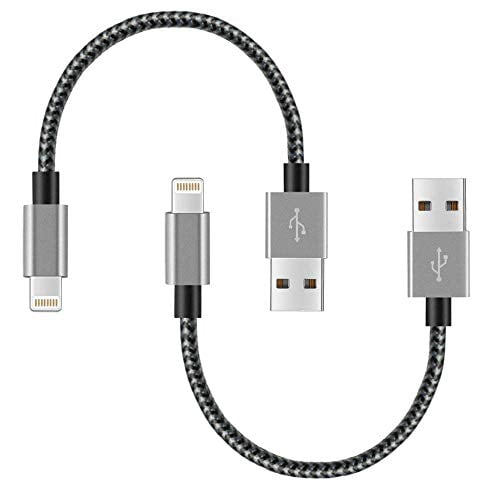 Chargers, Short Nylon Braided Fast Charging Cord, Data Sync Short Cable USB Powered Compatible with Apple iPhone, iPod Mobile Digital Device, Silver/Gray, 5-inch, 2-Pack