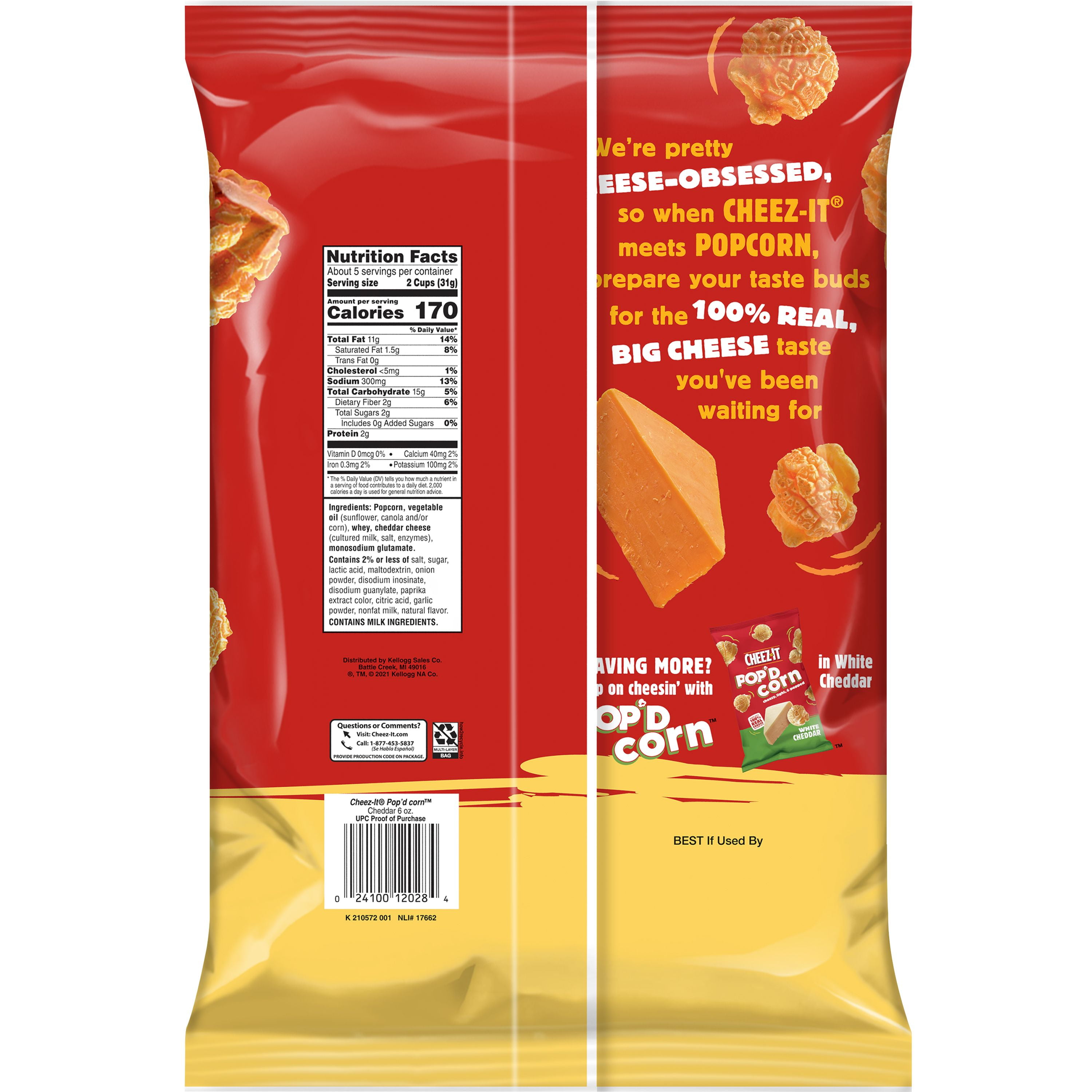 - Includes 1, 6-ounce bag of Cheez-It Pop’d Corn Cheddar; Packaged for great taste