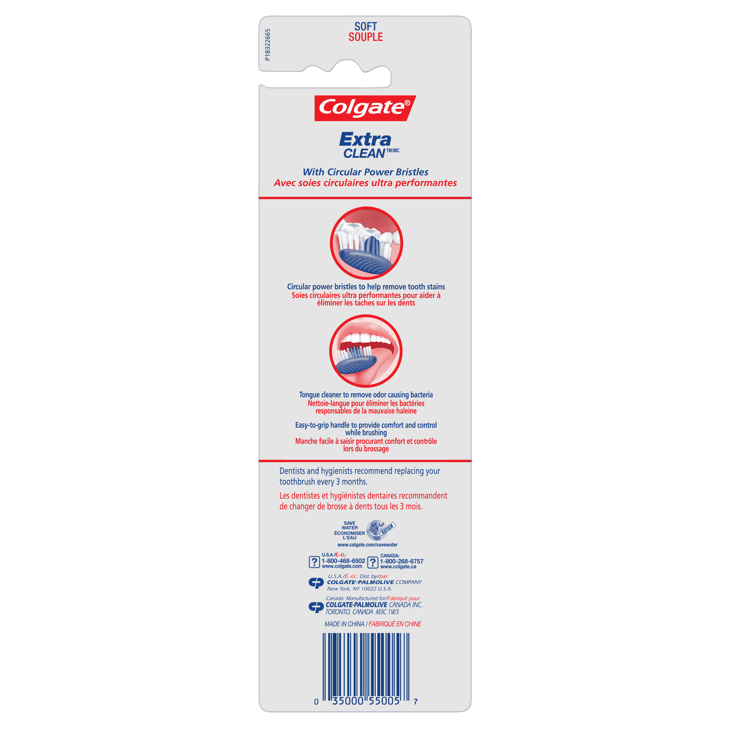 Colgate Extra Clean Full Head Soft Toothbrush is designed with circular power bristles to help remove tooth stains. Its cleaning tip bristles effectively reach and clean back teeth and between teeth. This manual toothbrush also has an easy-to-grip handle to provide comfort and control while brushing. Remember to change your toothbrush every 3 months.