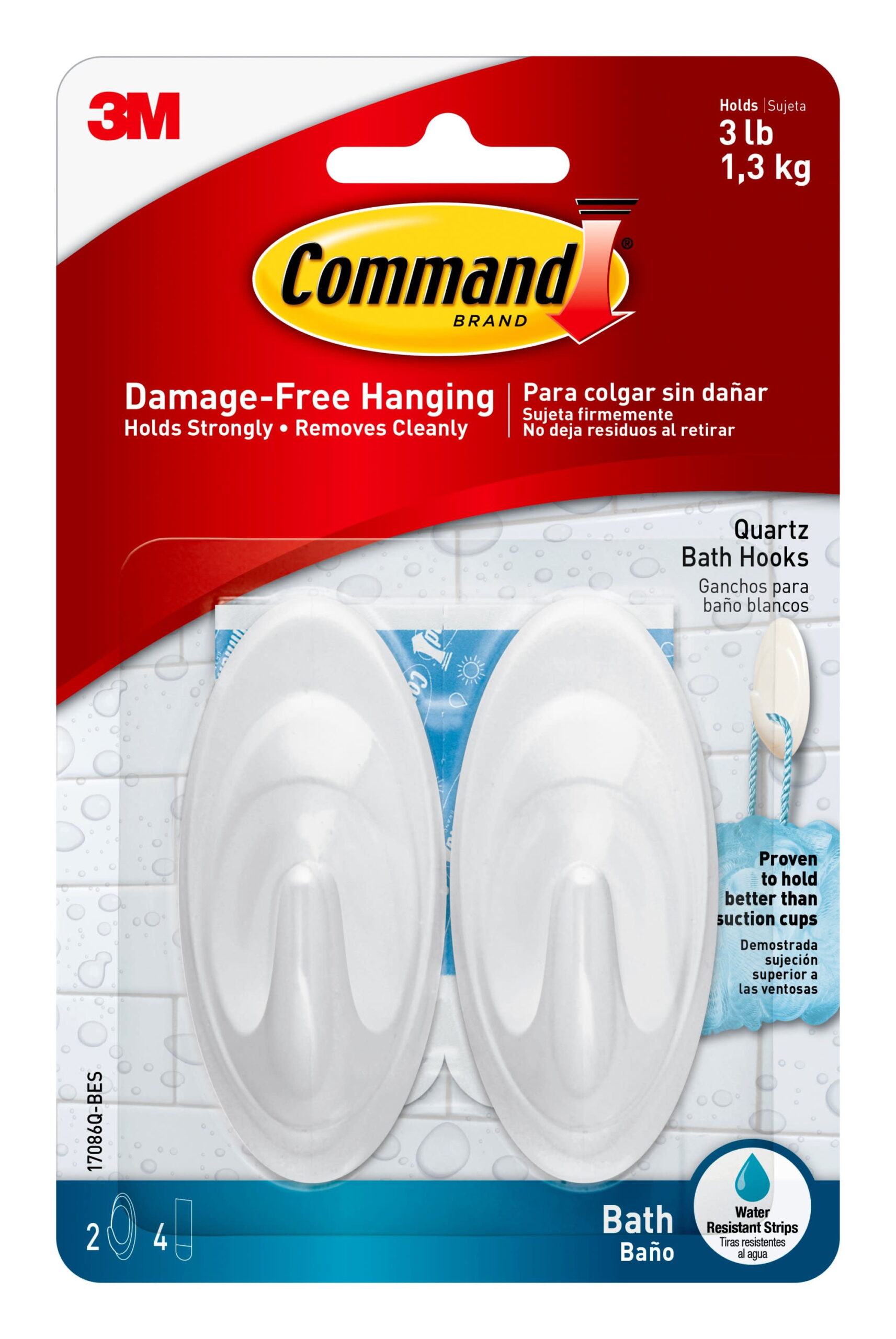 Command Bath Terrace Hooks, Quartz, 2 Wall Hooks, 4 Water Resistant Strips, Bathroom Organization