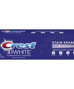 - Brighten your smile with Crest 3D White Stain Eraser Toothpaste in Polishing Mint flavor. Removes up to 80% of Surface Stains* caused by Tea, Coffee, Soda, Wine and more. This formula is gentle on enamel and helps protect against cavities, while also leaving breath minty fresh. *When used with a 2x daily brushing routine
