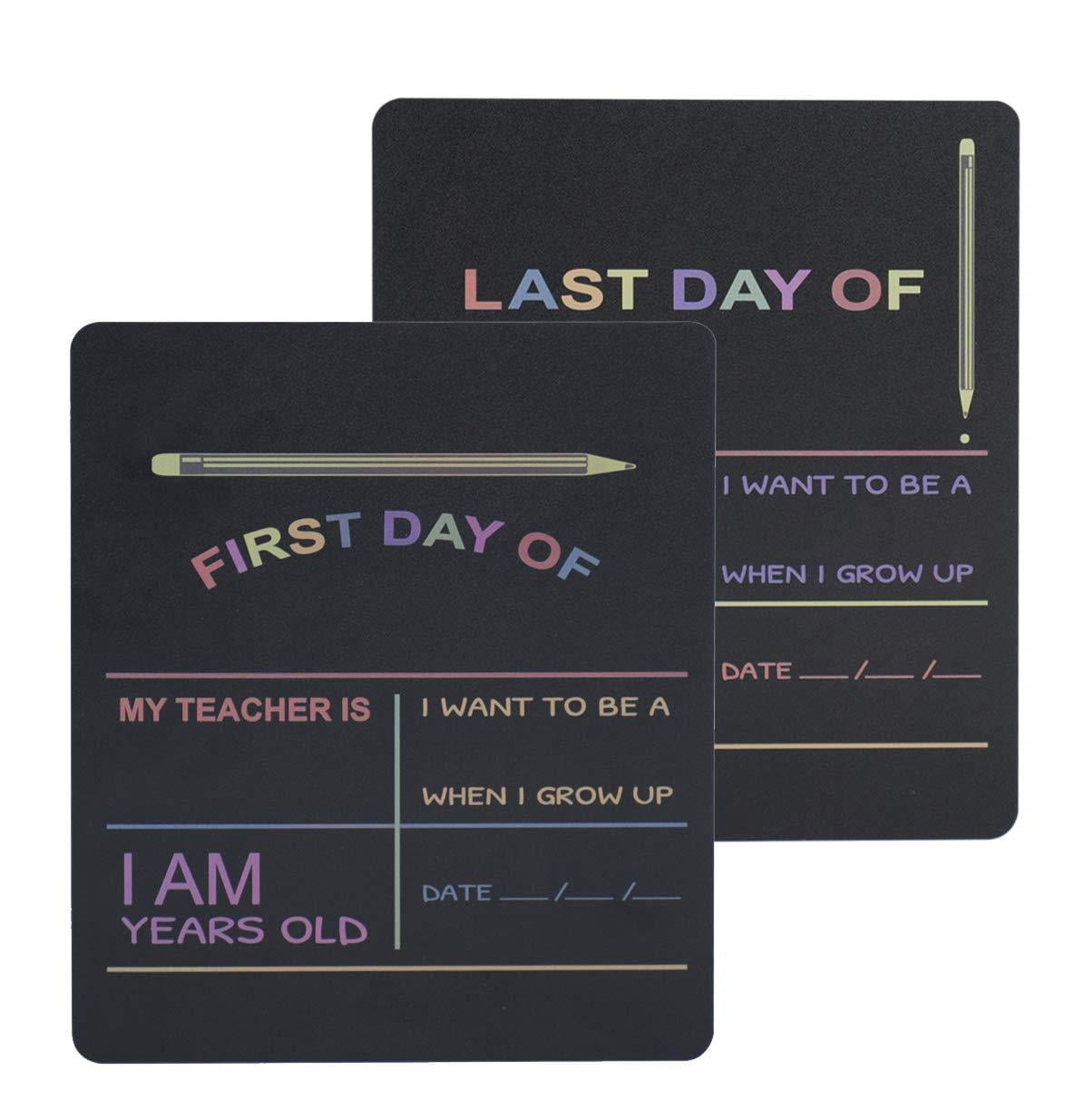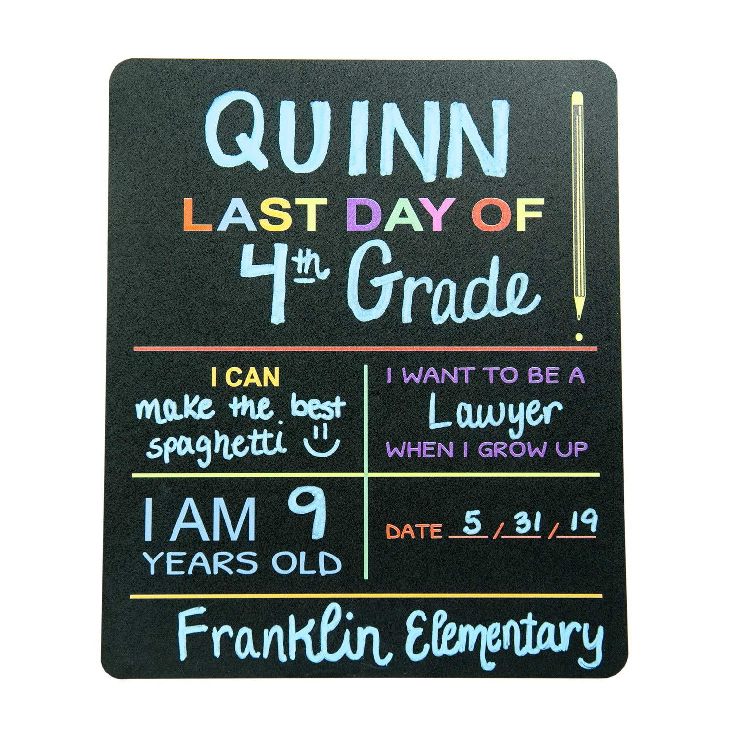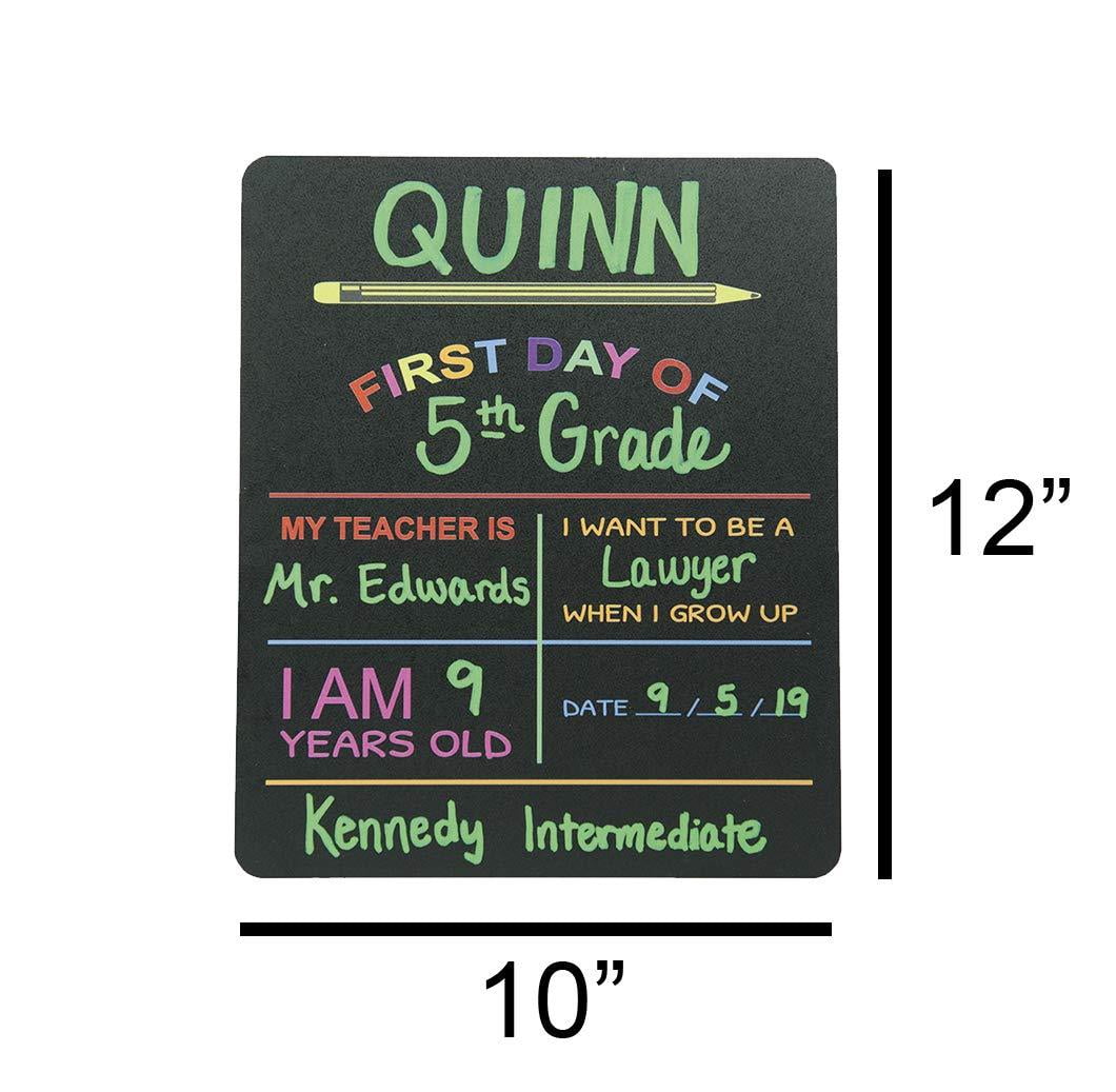 Custom Product Solutions Reusable First & Last Day of School Chalkboard Sign. Photo Prop Board, Black w/color print – 12” x 10” rectangle set of 2