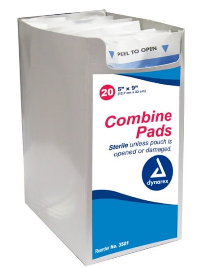 Non-Adherent Combine Pad 5" x 9", SterileDynarex Combine Pads, Sterile, 5 x 9 Inch, 20 CountDynarex Combine Pads, Sterile, 5 x 9 Inch, 20 Count