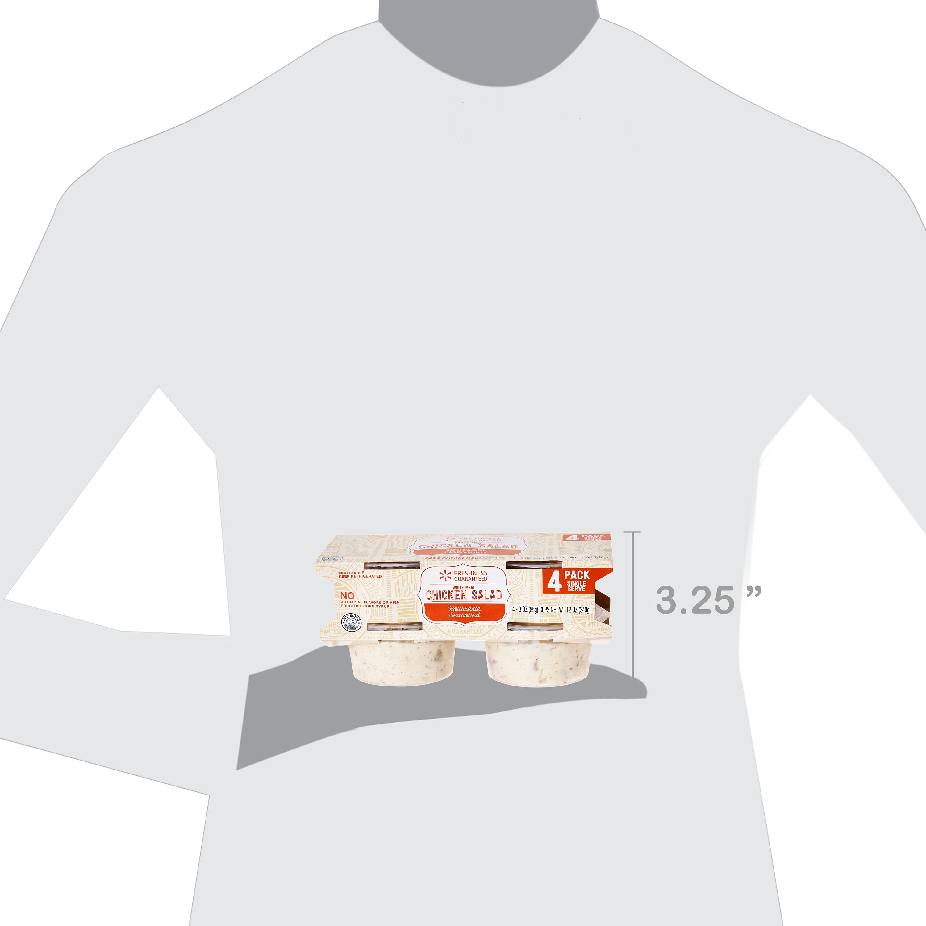 Freshness Guaranteed Rotisserie Seasoned White Meat Chicken Salad is a classically delicious dish that is perfect for potlucks, parties, and everyday meals, This tasty dish is made with wholesome blend of tender rotisserie white meat chicken, chopped celery, red onion, and a touch of lemon juice combined with spices and a creamy dressing to create a mouth-watering treat. Use it to create a chicken salad sandwich and serve with chips for a tasty lunch that is quick and easy to prepare or serve it up with crackers and apple slices for a quick bite. This package includes four three-ounce servings that are ideal to pack in a lunch. Enjoy restaurant-quality taste in the comfort of your home with Freshness Guaranteed Rotisserie Seasoned White Meat Chicken Salad. Freshness Guaranteed provides you and your family with high-quality fresh food that saves you time and money, many of which are cooked fresh or prepared in stores. Convenient solutions with value-added in every Spark Fresh item.