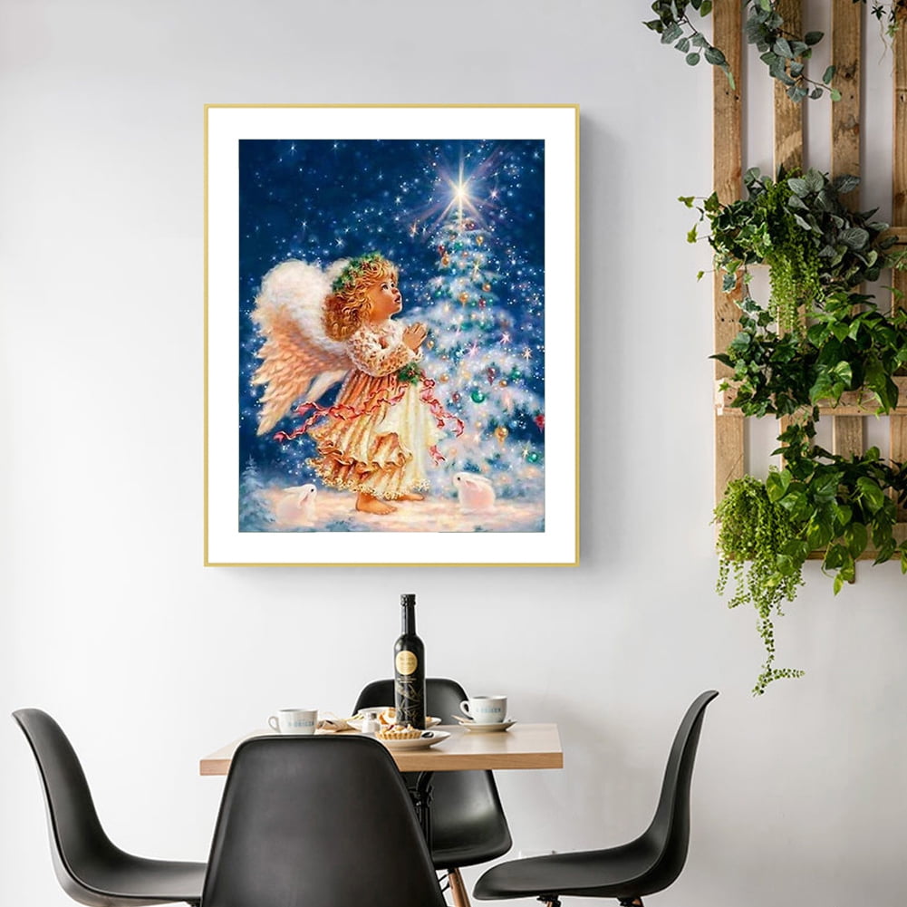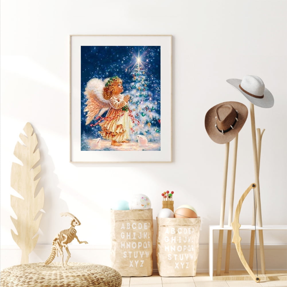 5D DIY Christmas Tree Little Girl Full Round Drill Diamond Picture Mosaic Kit Rhinestone Drawing Painting Home Decoration Art Craft