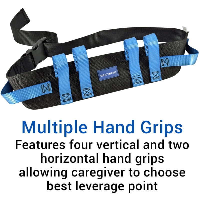 - SURE GRIP FROM ANY ANGLE – Features four vertical and two horizontal handles that allow the caregiver to choose the most effective leverage point to safely and effectively transfer or walk with a patient, resident or loved one