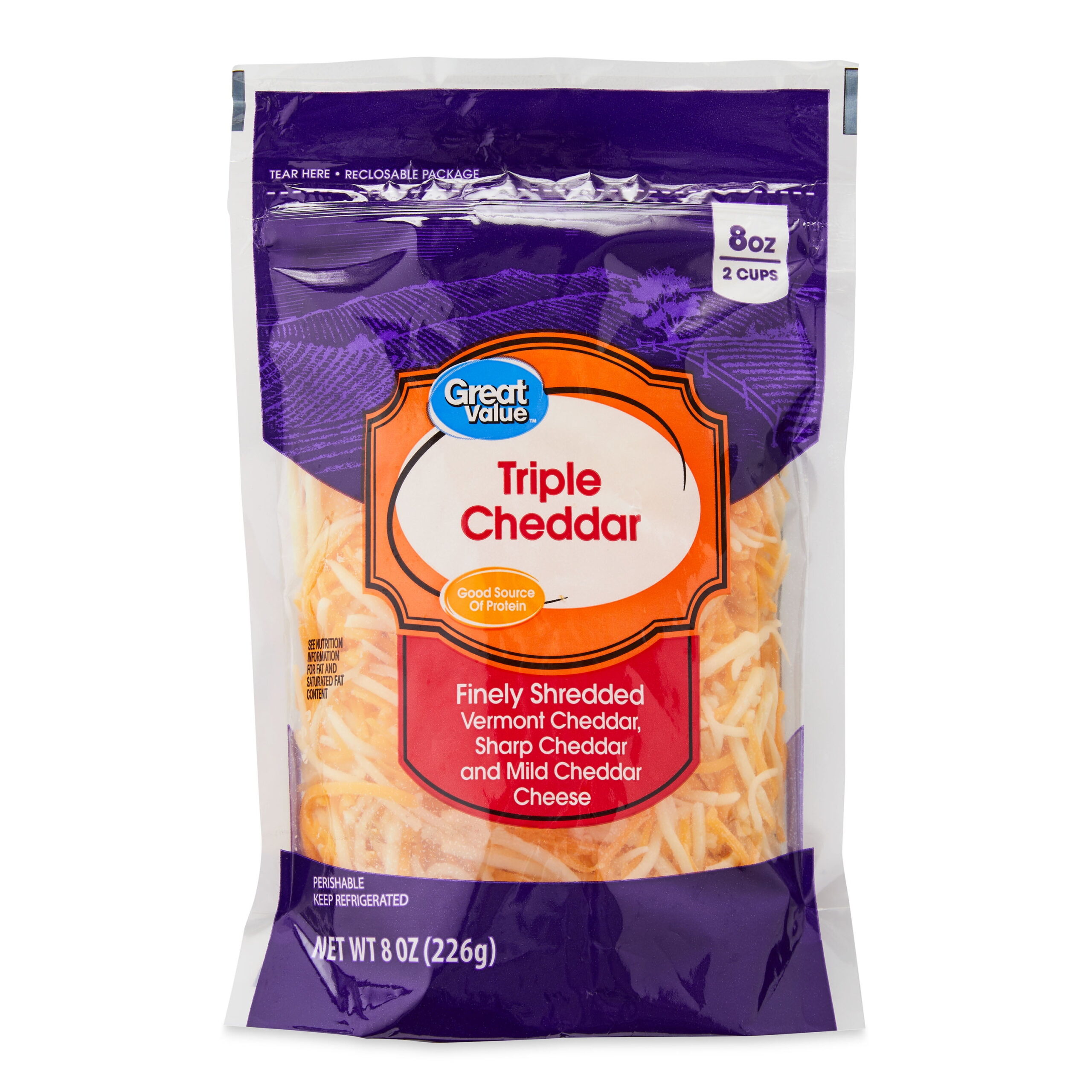 Great Value Finely Shredded Triple Cheddar Cheese, 8 oz