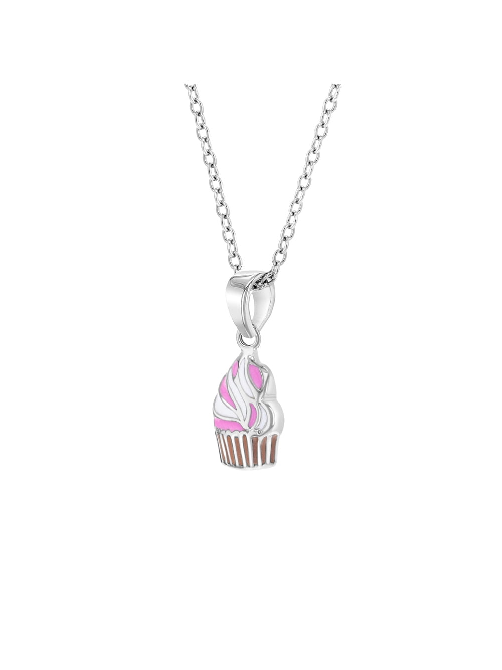 925 Sterling Silver 16′ Girl’s Cute Multicolor Cupcake Pendant Charm Necklace