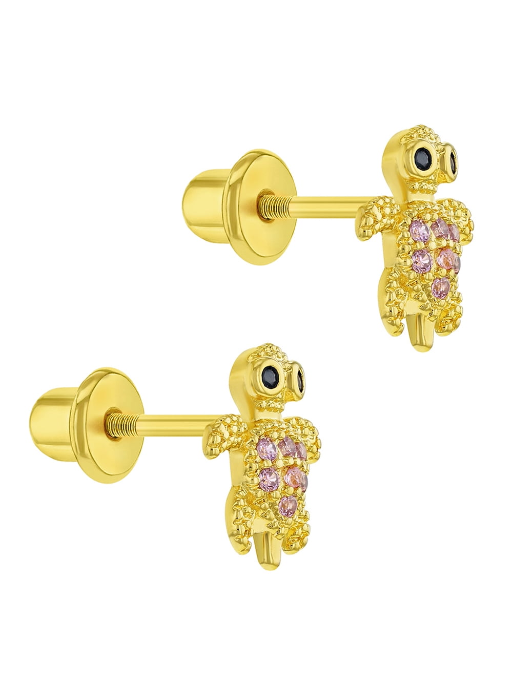 Gold Plated Pink Cubic Zirconia Screw Back Earrings for Babies & Toddlers 3mm