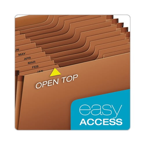 Built to last with extra-thick, 80-pt. soil-resistant covers with rip-proof Tyvek reinforcement along the top and bottom of each gusset. Index features extra-large, 1/3-cut double-top tabs. Open Top. Pocket/Wallet Type: Files/Papers Size: Letter Colors: Redrope Color Family: Brown. Green : Paper contains 10% post-consumer recycled content, 10% total recycled content.