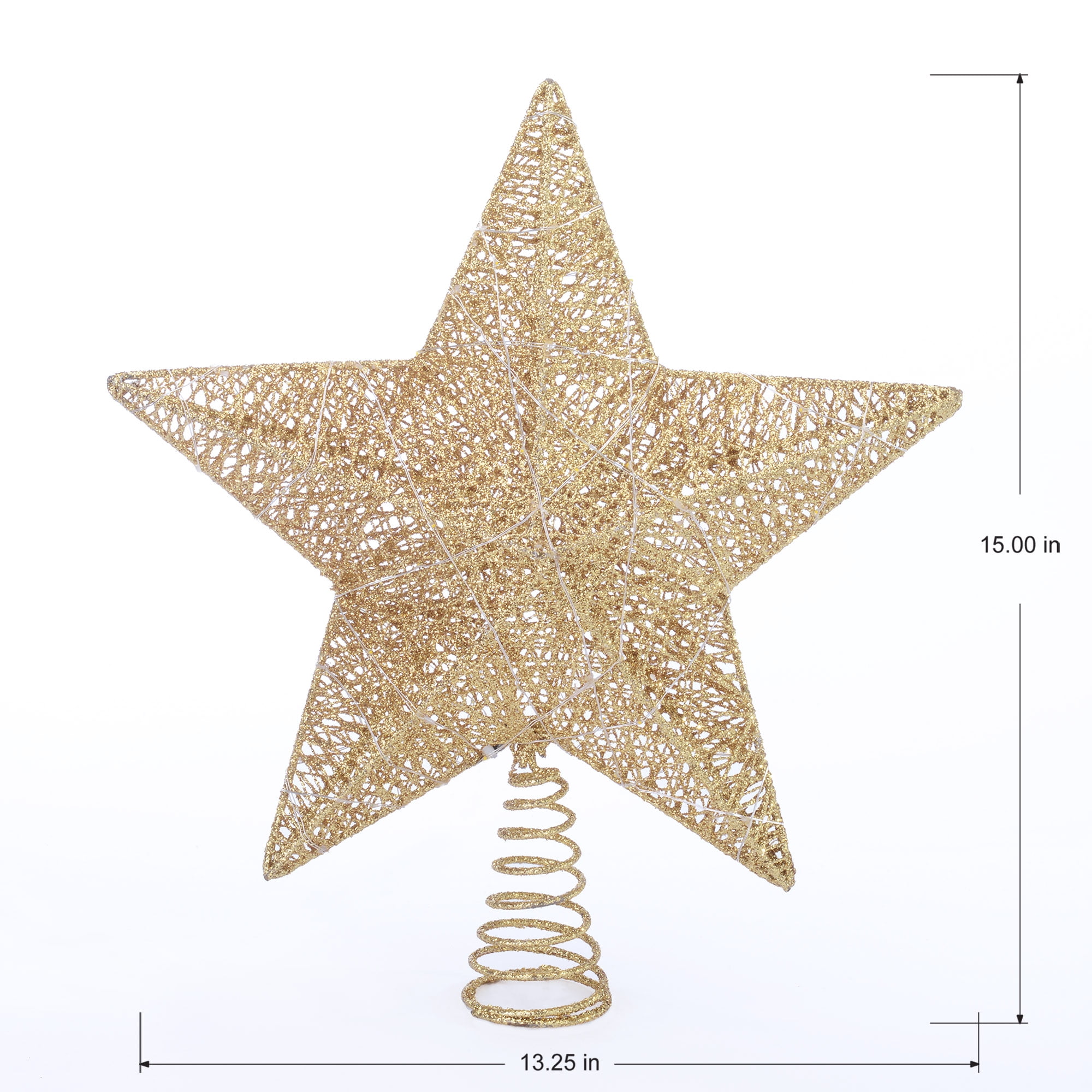 Holiday Time Warm White LED Gold Star ChristmasTree Topper, 15":