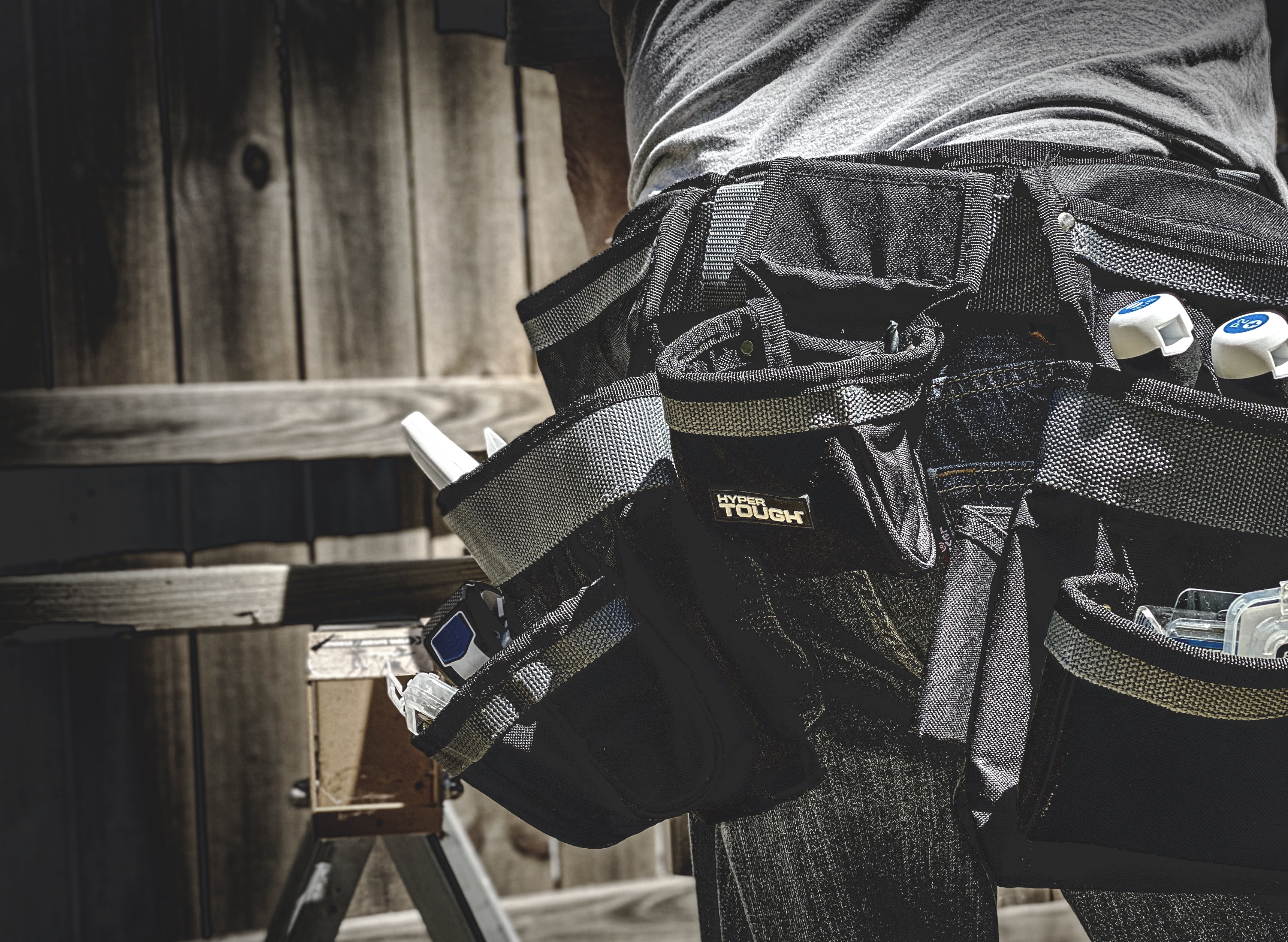 Keep your supplies handy during any job with this Hyper Tough Carpenter’s Rig HT-599-08-1. It is a high-quality and durable carpenter belt that holds all of your essentials. This carpenter tool belt holds a wide variety of tools and fasteners. It has several pockets of different sizes to keep everything organized. It includes a center tape pocket and metal loops to hang hammers from. The tool belt features a comfortable padded belt with a single roller buckle that adjusts and fits most waist sizes. Make quick work of any project when you keep everything you need within arm’s reach with this carpenter belt.