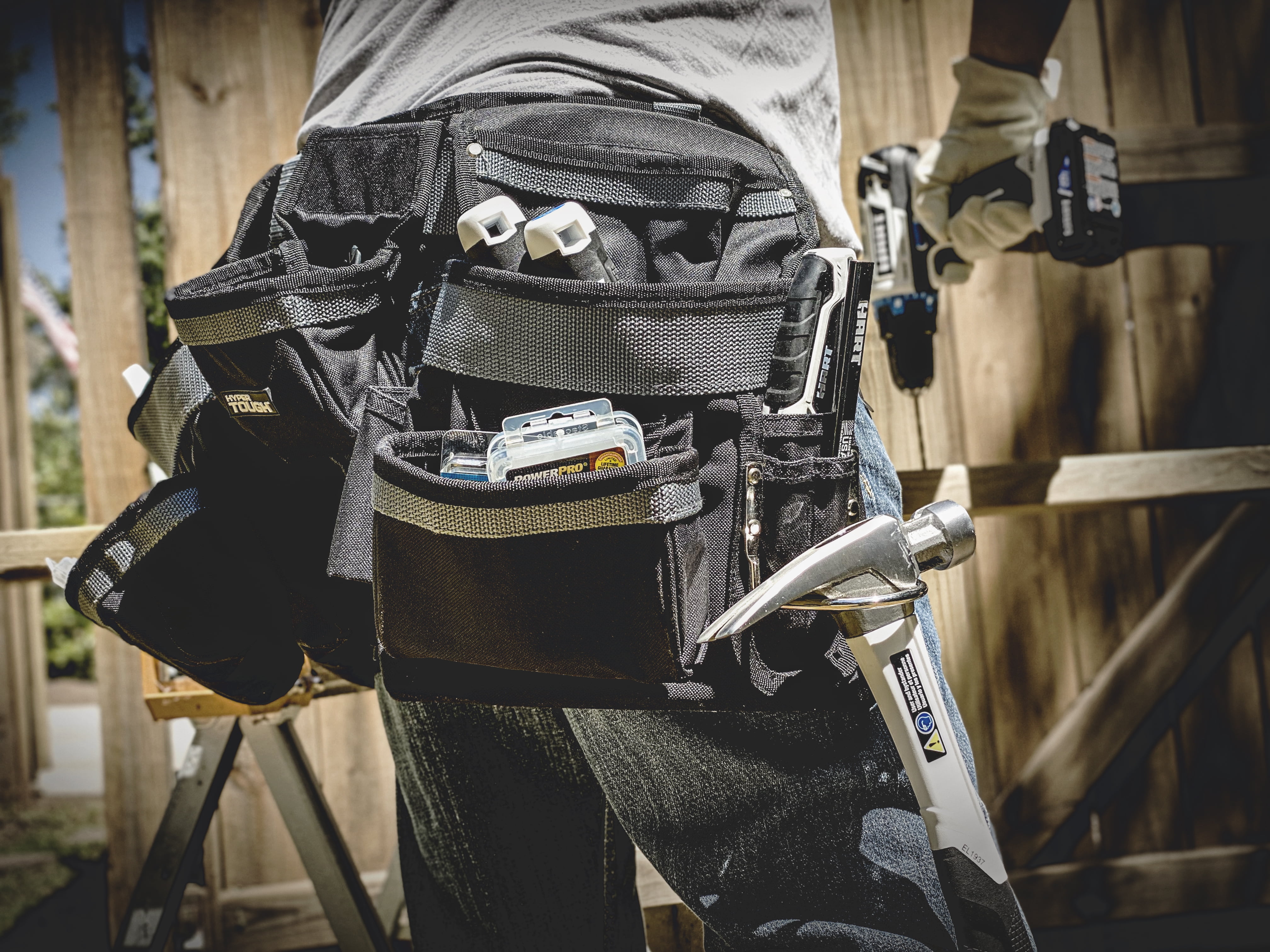 - Carpenter tool belt keeps supplies handy for quicker, easier work