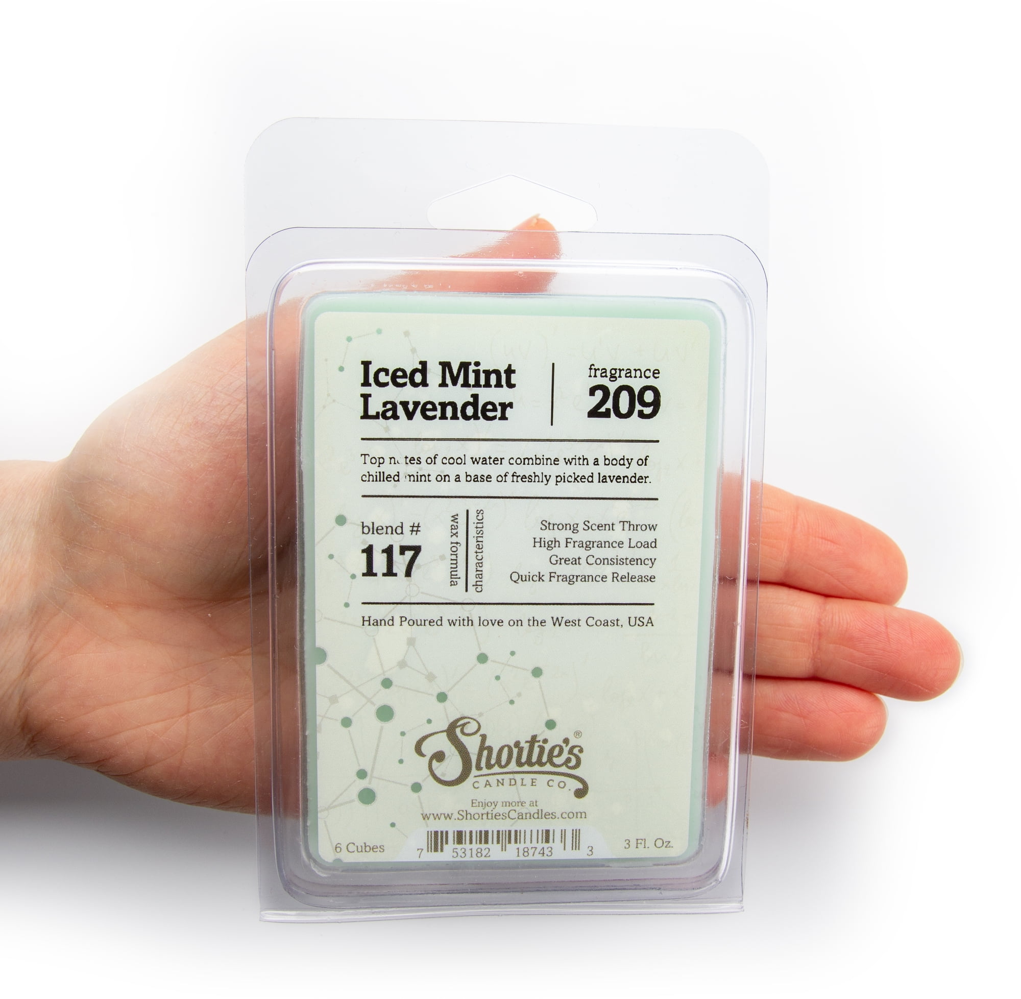 Top notes of cool water combine with a body of chilled mint on a base of freshly picked lavender to complete this brilliantly clean fragrance. Our Premium Iced Mint Lavender Wax Melts are highly scented, made with Essential and Natural fragrance oils, and are completely phthalate free, vegan, and non toxic! Each pack of Wax Melts contain 6 1/2 Oz. warmer wax cubes, and each will provide strong fragrance for 8+ hours. Our Premium Wax Melts are a completely safe flameless fragrance wickless candle option for any space and pets of all types. Our Formula 117 wax blend is made with a soft paraffin, and is designed for maximum scent throw. This new formula also comes out of the package much easier than our classic formula. Truly an experiment, but one we really like!