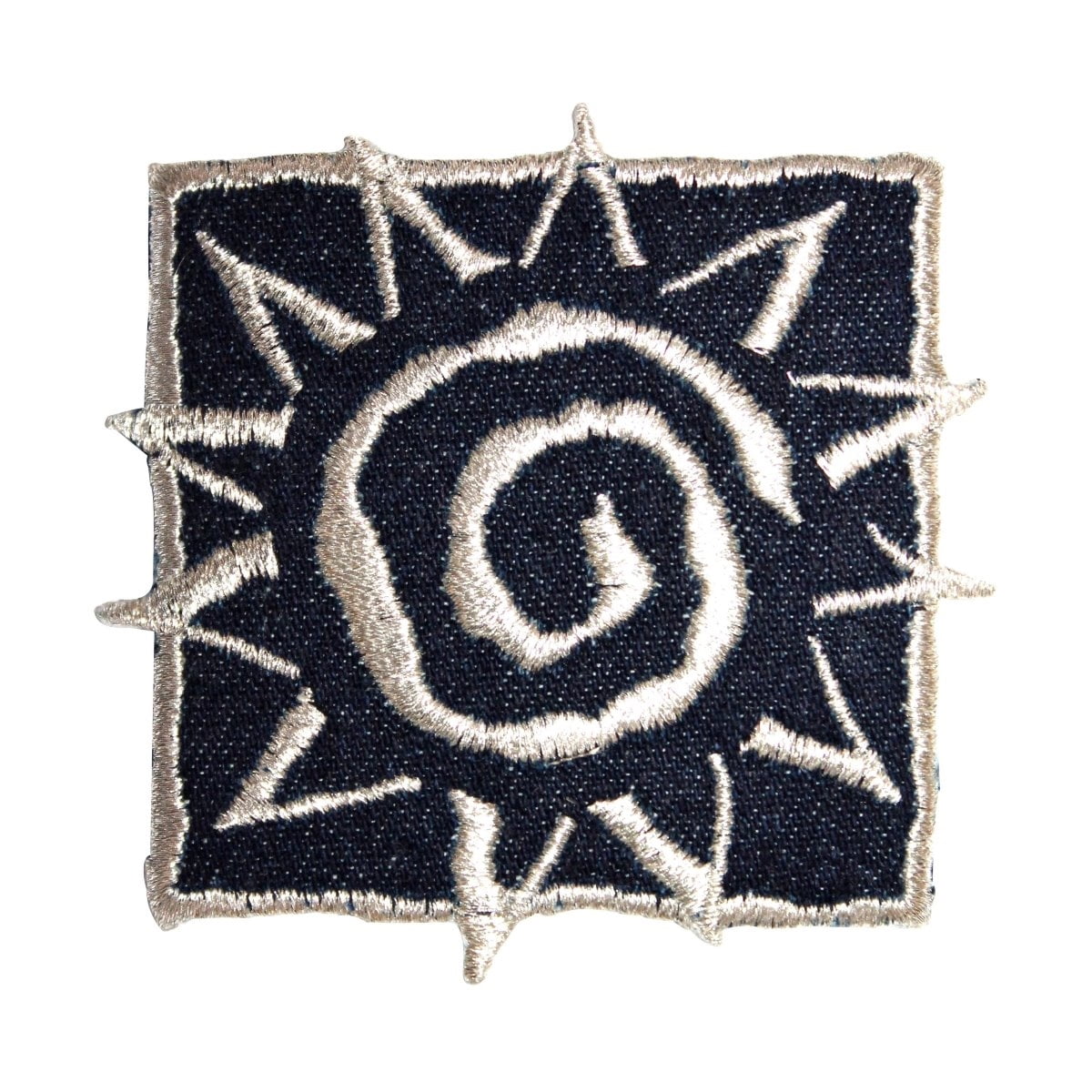 ID 8761 Silver Spiral Sun Patch Tribal Denim Badge Embroidered Iron On Applique. New embroidered iron on patch. Size is approximately 2 3/4" wide and 2 3/4" tall.