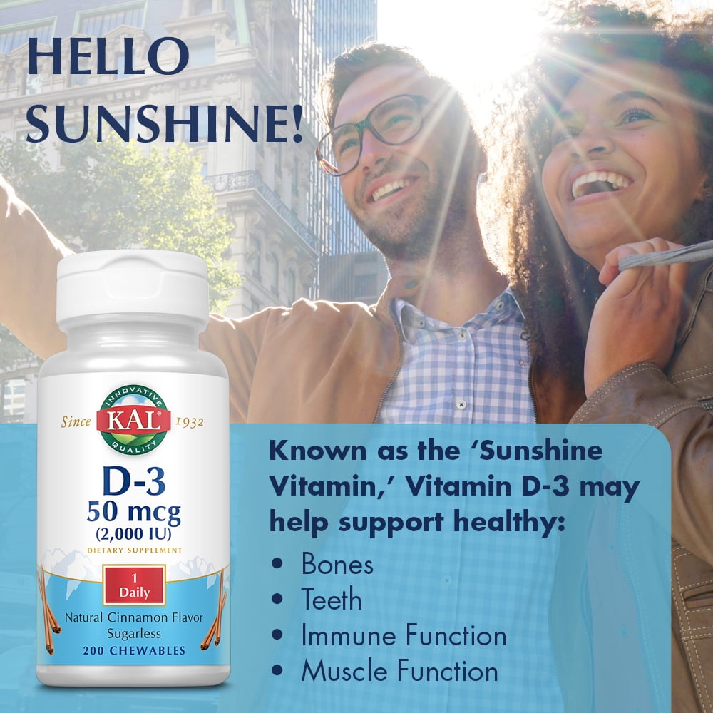 KAL D-3 2000 IU Sugarless Chewable Cinnamon, 200 Count