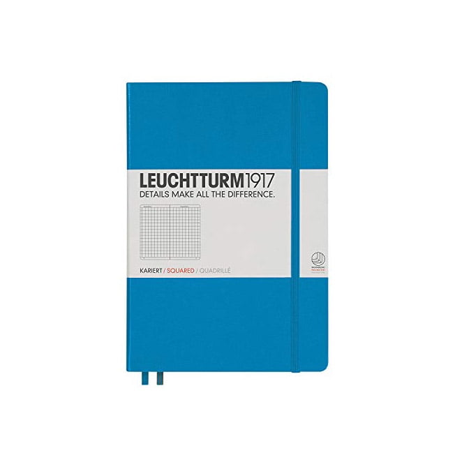 LEUCHTTURM1917 – Medium A5 Squared Hardcover Notebook (Azur) – 251 Numbered Pages