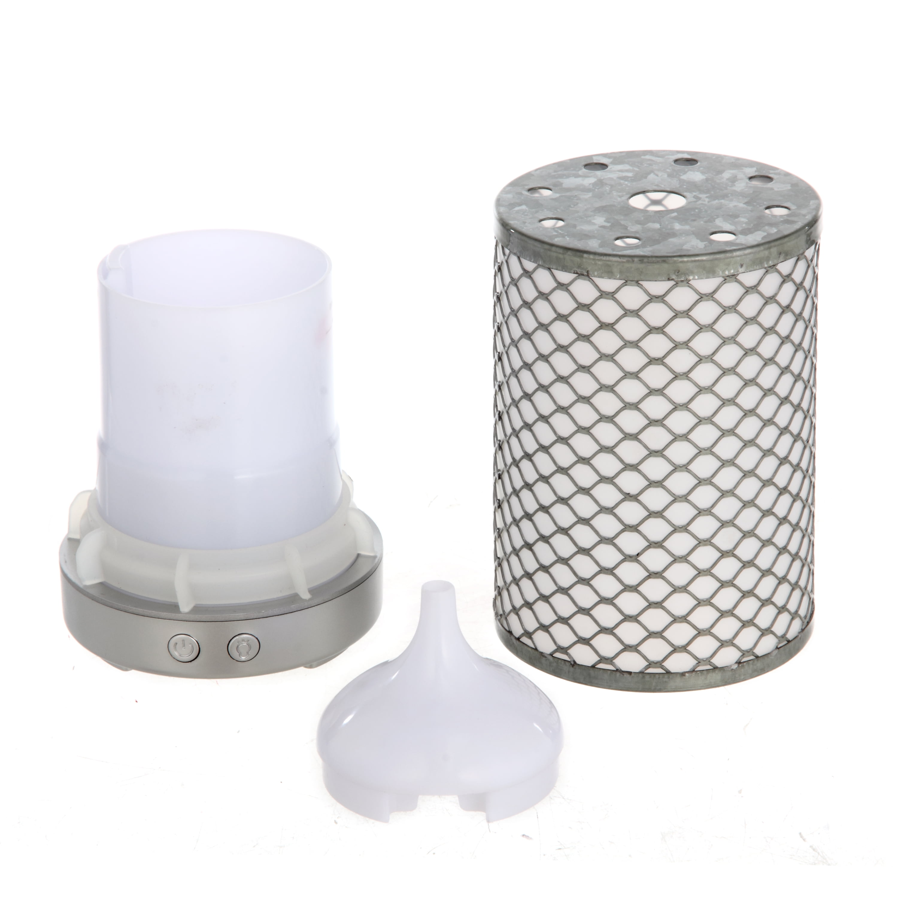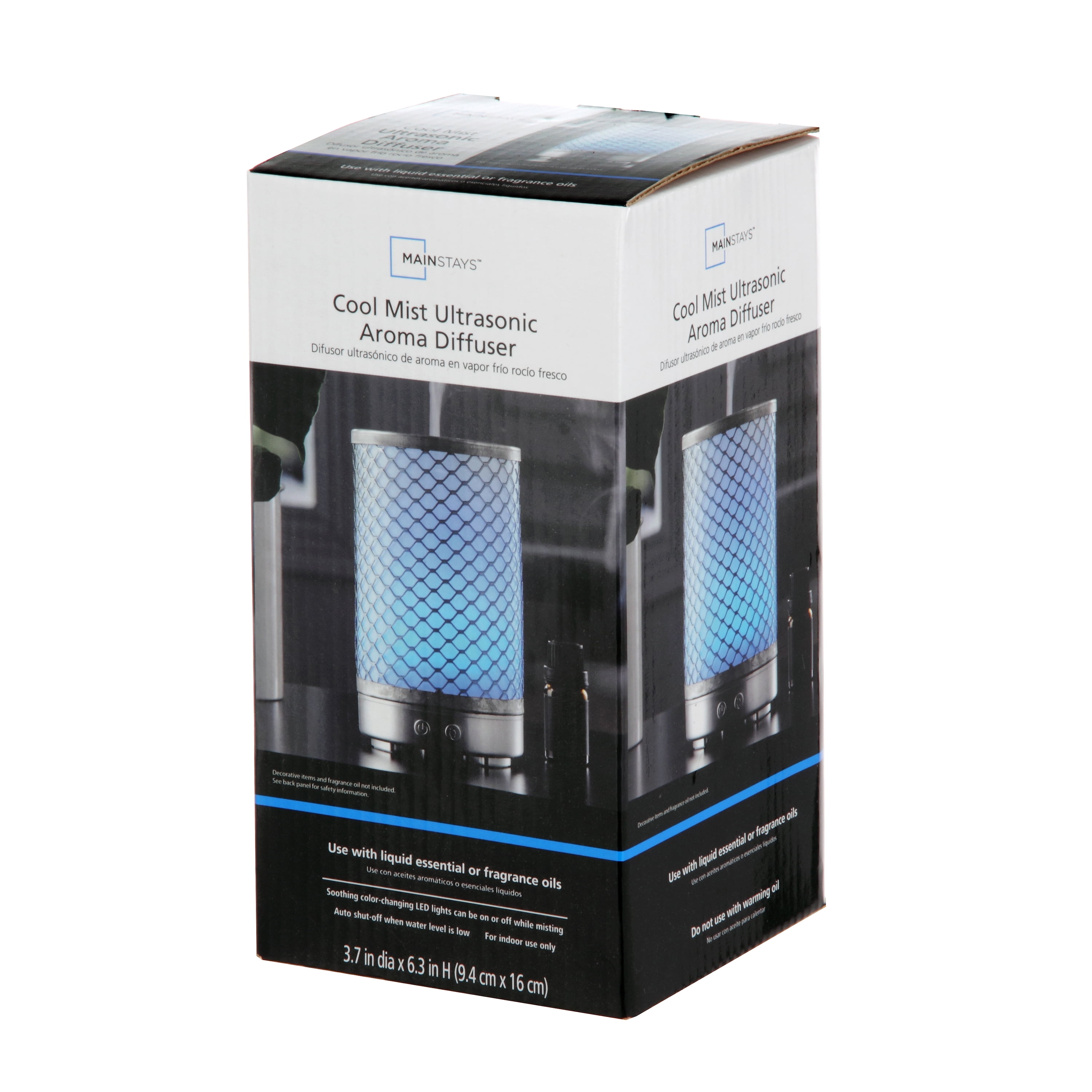 Improve the atmosphere and quality of air within your home with our Mainstays Cool Mist Ultrasonic Aroma Diffuser, Silver Chain Link. It has a sleek, galvanized chain link design that complements any decor and features calming LED lights that alternate colors, which can be on or off while misting. By pairing this aroma diffuser with your preferred essential oil for the scent you desire, you can bring an energizing, invigorating, or soothing presence to your space.