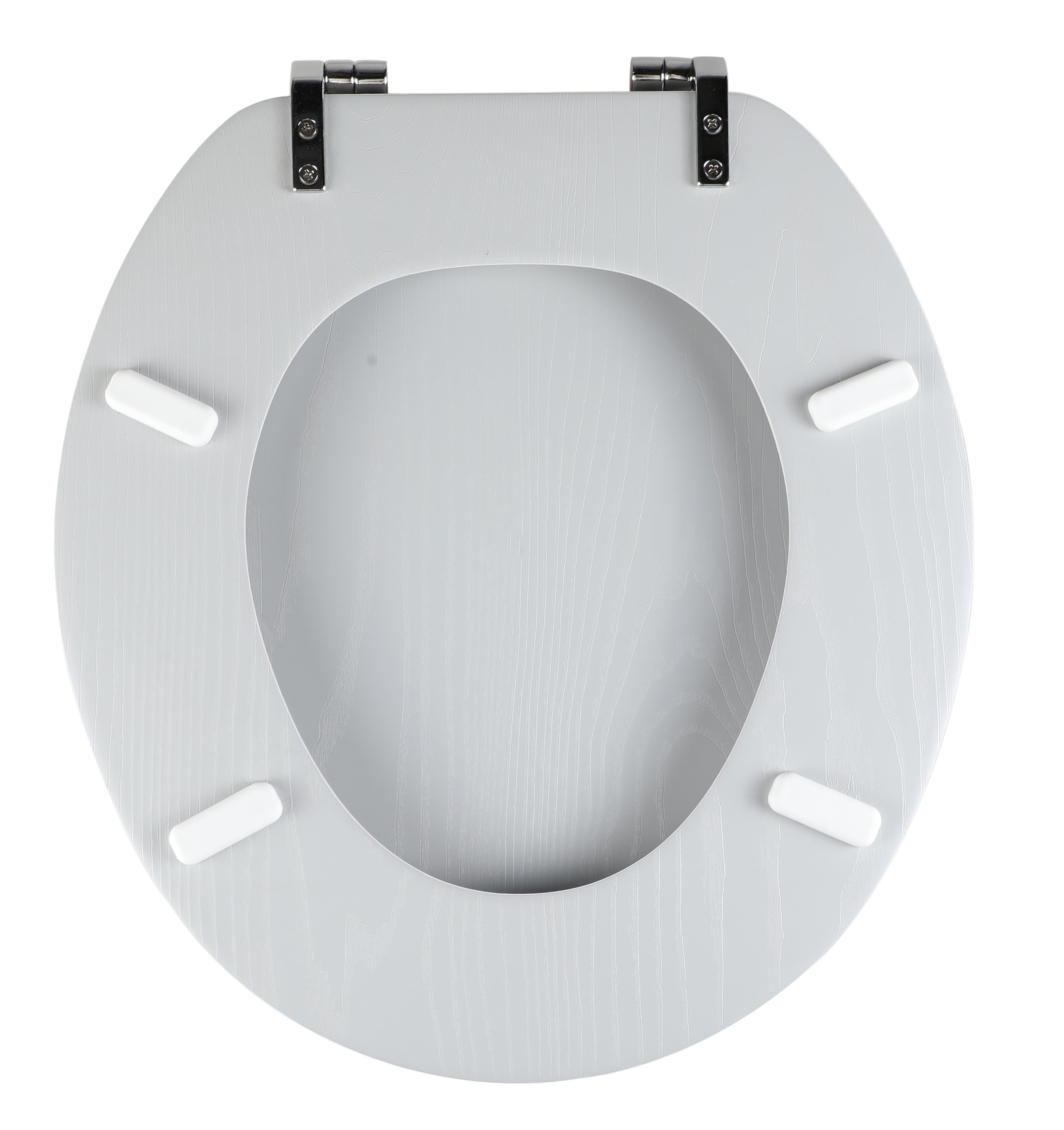 Indulge yourself with the pinnacle of comfort when you are sitting on the throne in your home with this Veneer Wood Toilet Seat by Mainstays. This elegant toilet seat fits most round bowls and can be easily assembled using the basic tools included in the packaging. To maintain the pristine condition of the seat clean this toilet seat with a soft damp cloth while avoiding abrasive cleaners. The molded wood toilet seat is a pleasure to sit on and is sure to greatly improve your experience in the bathroom.