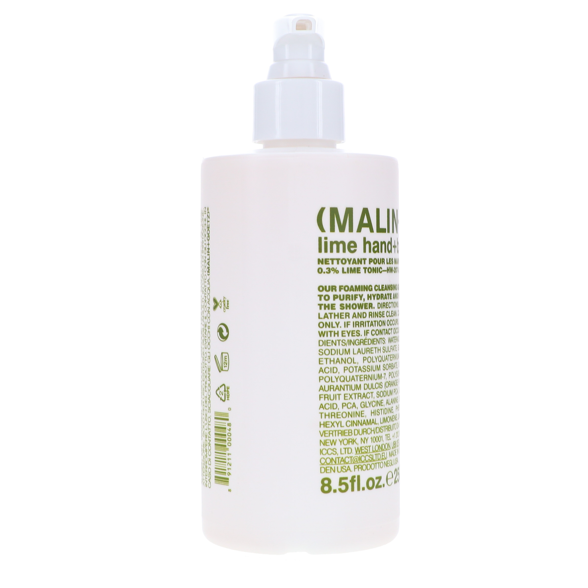 Malin+Goetz Lime Hand+Body Wash 8.5 oz stands as one of the most premium skin care products for those looking to elevate the condition of the skin on their hands and the body. Move over facial products. Here is a product to show your hands and body some tender loving care. Malin+Goetz brings you this premium cleansing formula with the fresh scent of lime for an unbelievable clean. Dirt, oil and other pollutants are removed without loss of moisture or other essential nutrients. A blend of amino acids and glycerin helps lock in hydration that helps your skin look and feel its best. The pleasant foam gently washes away the dirts for that newly restored feel. With no animal products or testing, you can be confident that this hand and body wash is good to you. It is ideal for all skin types.