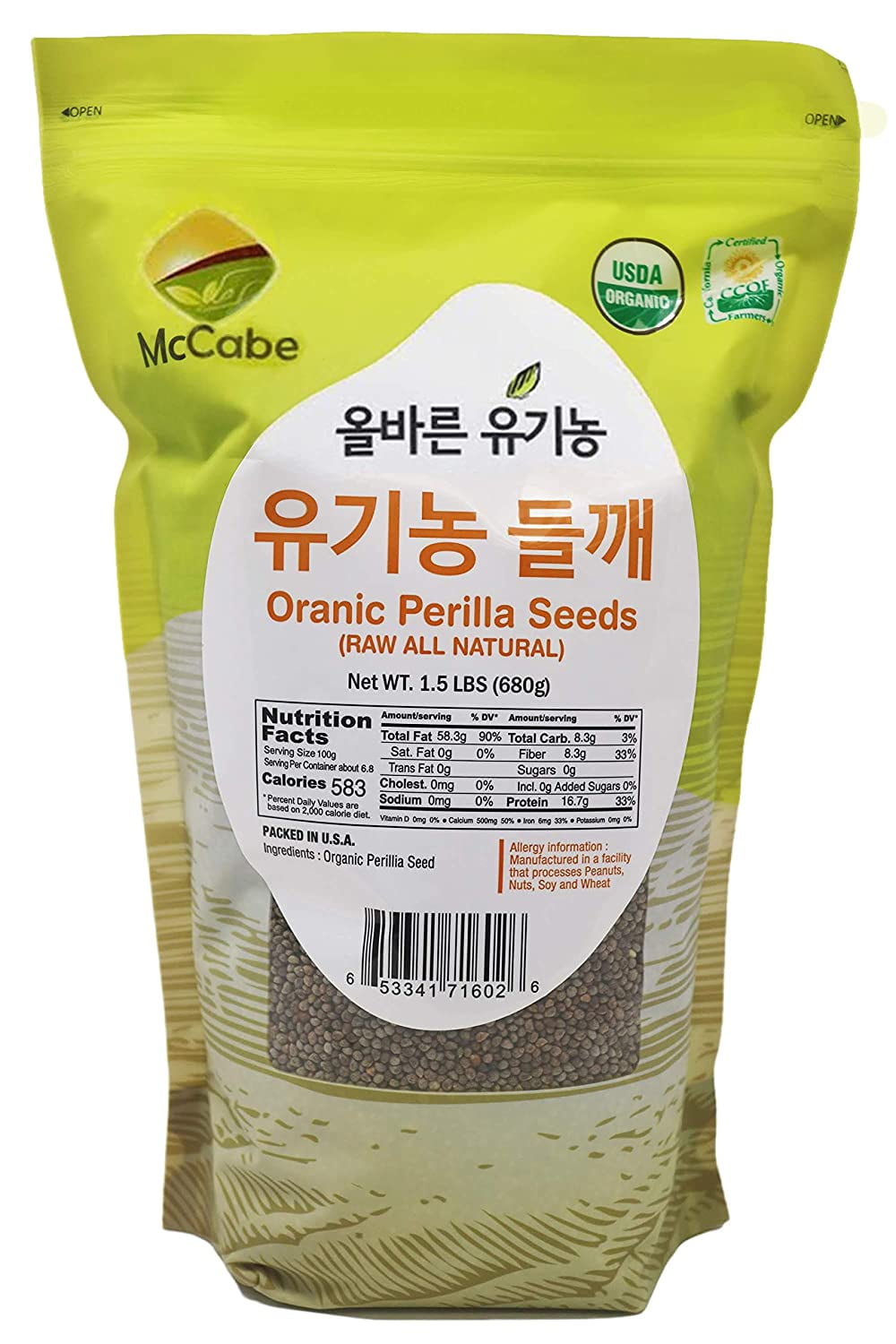McCabe Organic Raw Perilla Seeds, 1.5-Pounds, USDA Certified Organic, Packed in USA