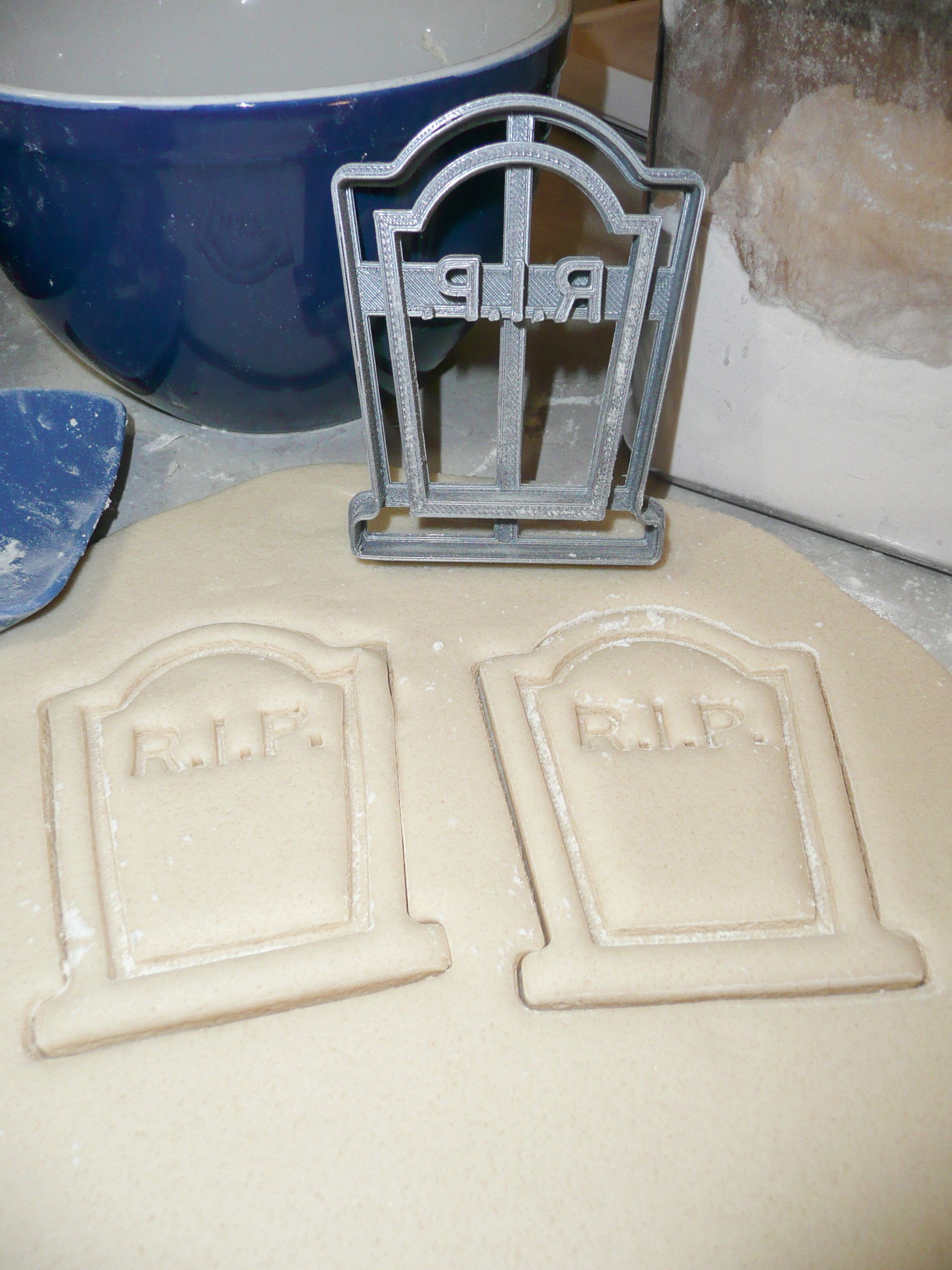 3" X 3 7/8" X 5/8" COOKIE CUTTERS PLAY DOUGH CLAY HAND WASH. NOT DISHWASHER OR OVEN SAFE. MADE WITH FOOD SAFE PLASTIC MADE IN THE USA When using these cookie cutters, it works best rinsed off with water and towel dried then put in flour before pressing into cookie dough. Note: Not dishwasher-safe! Hand wash only.RIP Tomb Stone Headstone Grave Marker Halloween Cookie Cutter USA PR112