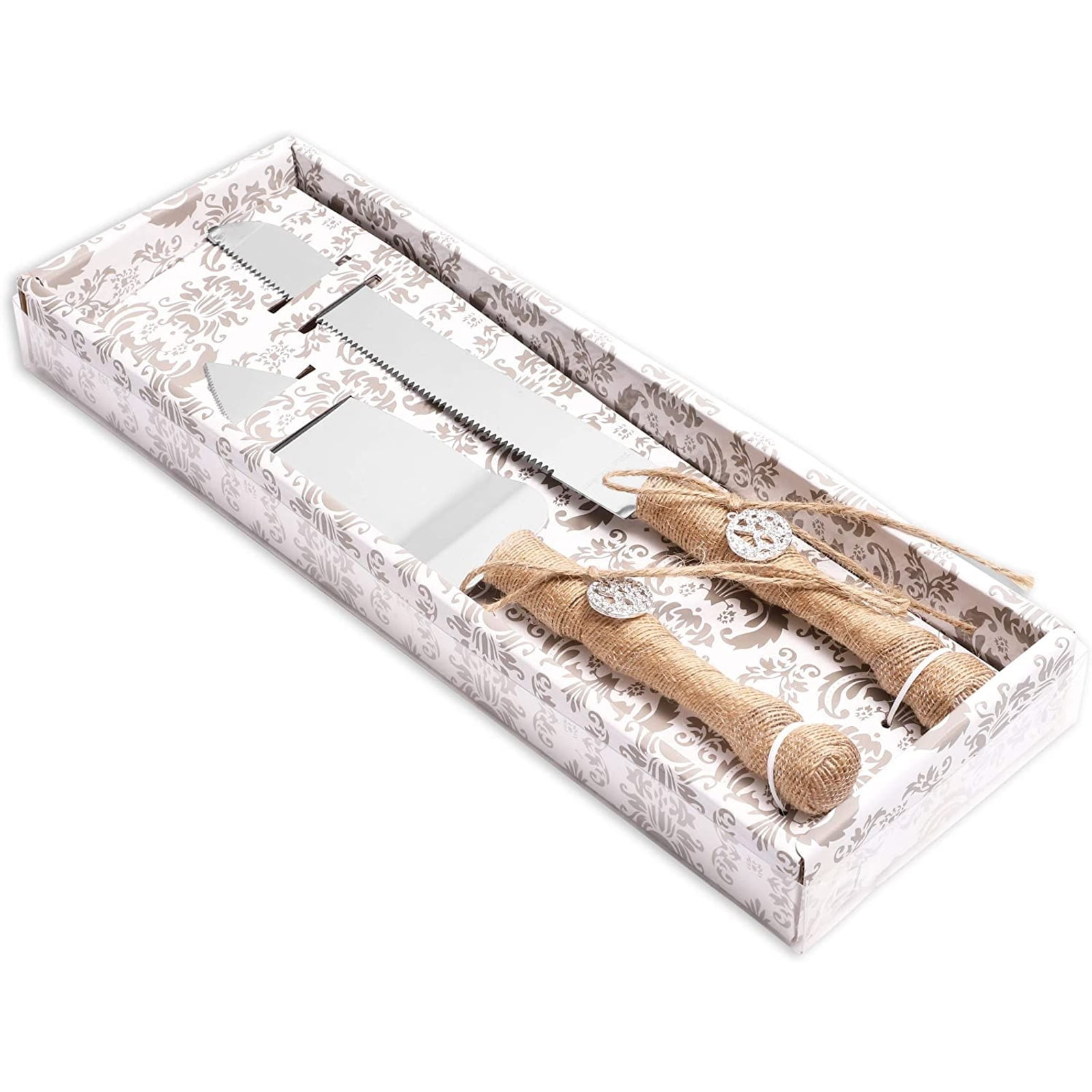 - A SLICE OF LOVE: Celebrate your special day and enjoy delicious pastries and desserts with these lovely rustic wedding cake knife and server set