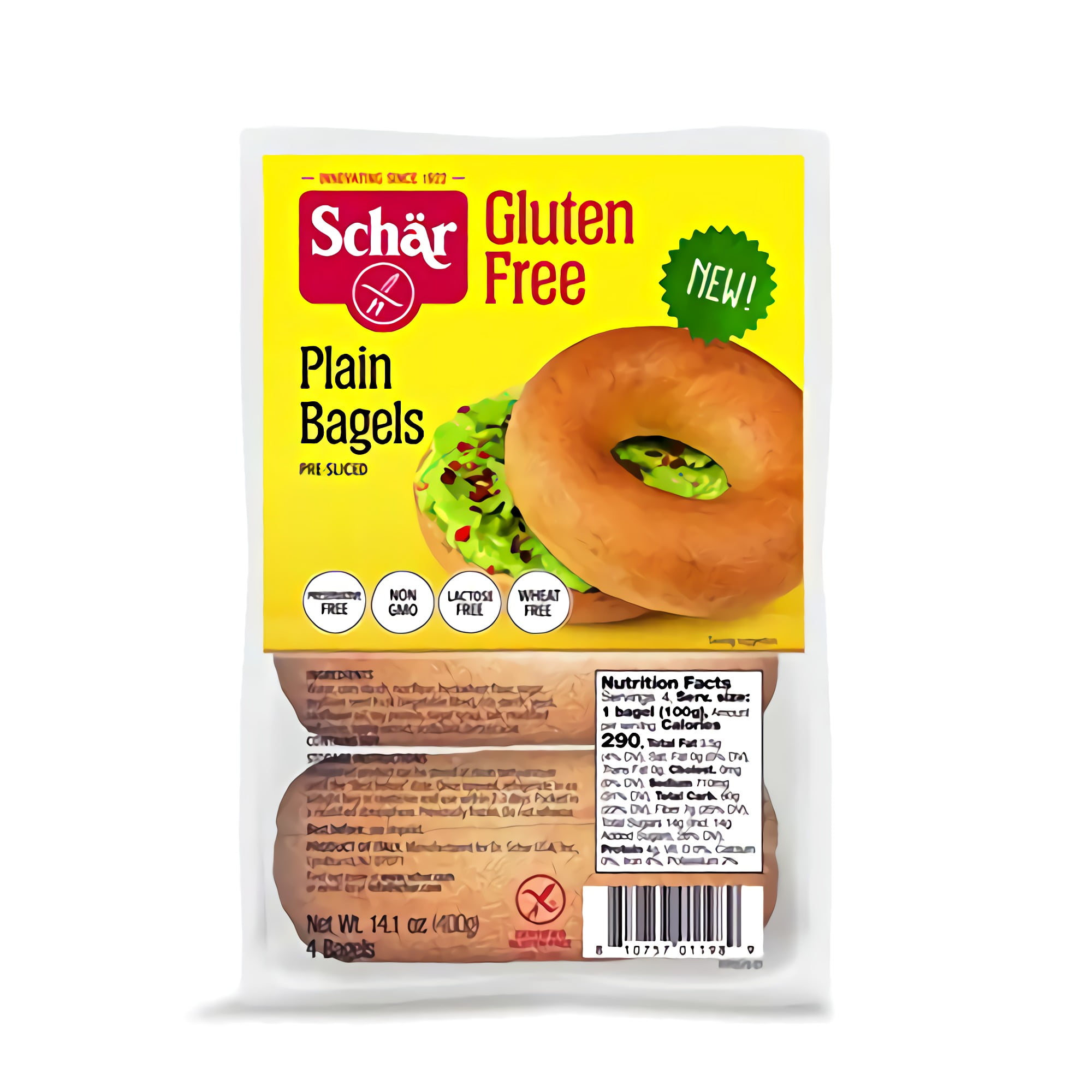 - One 14.1 oz sealed package of Gluten Free Plain Bagels (4 Bagels)
