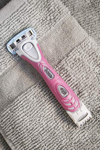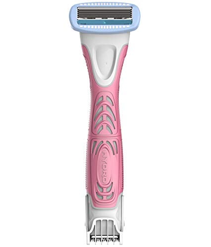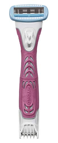 Schick Hydro Silk TrimStyle for women razor offers dual function in an easy-to-use, compact tool. The moisturizing, water-activated conditioning serum, the five curve-sensing blades, and a battery-powered trimmer with three length settings, is ideal for your bikini area and offers a close, clean, comfortable shaving experience.